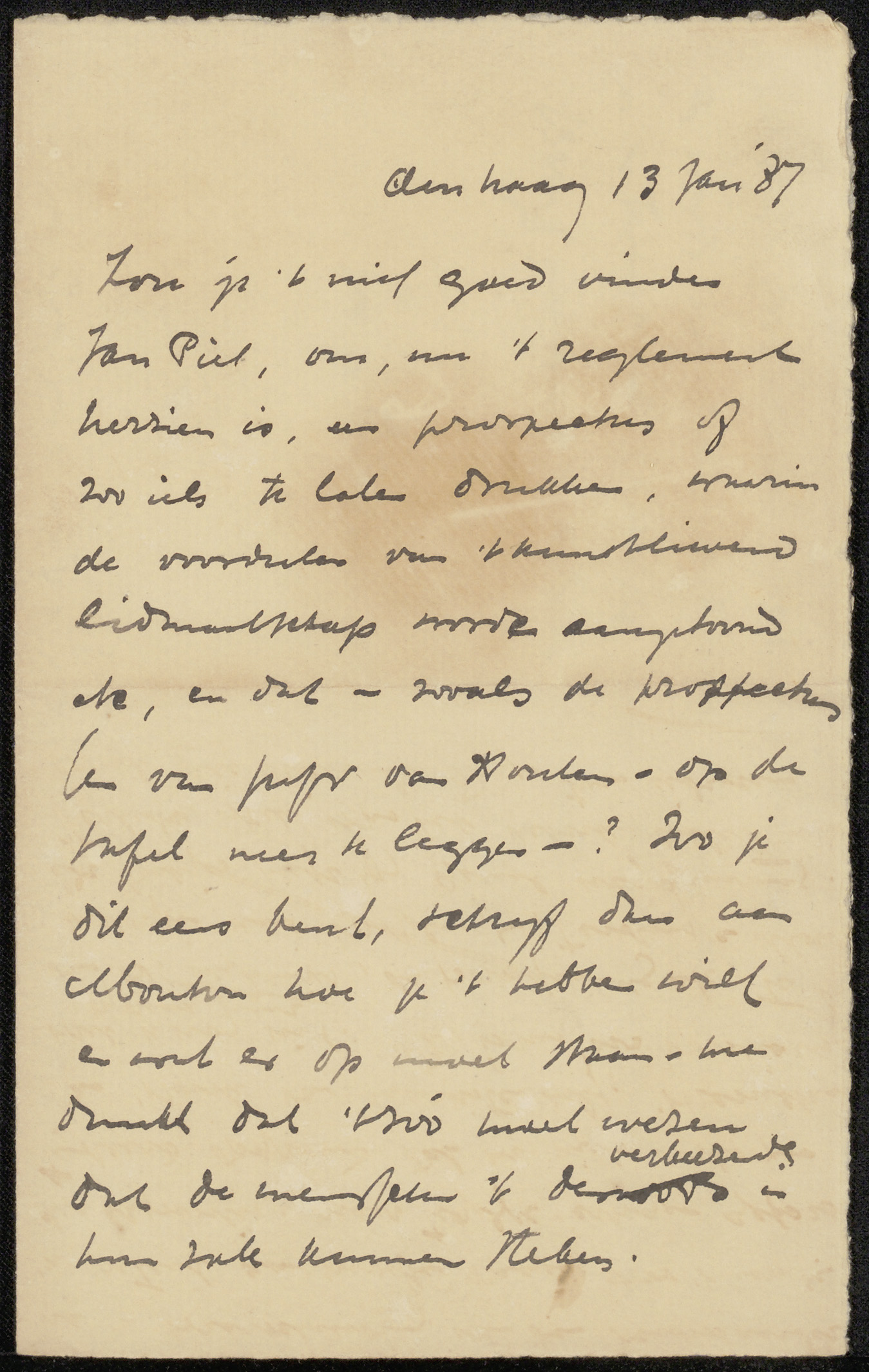 Brief aan Jan Veth