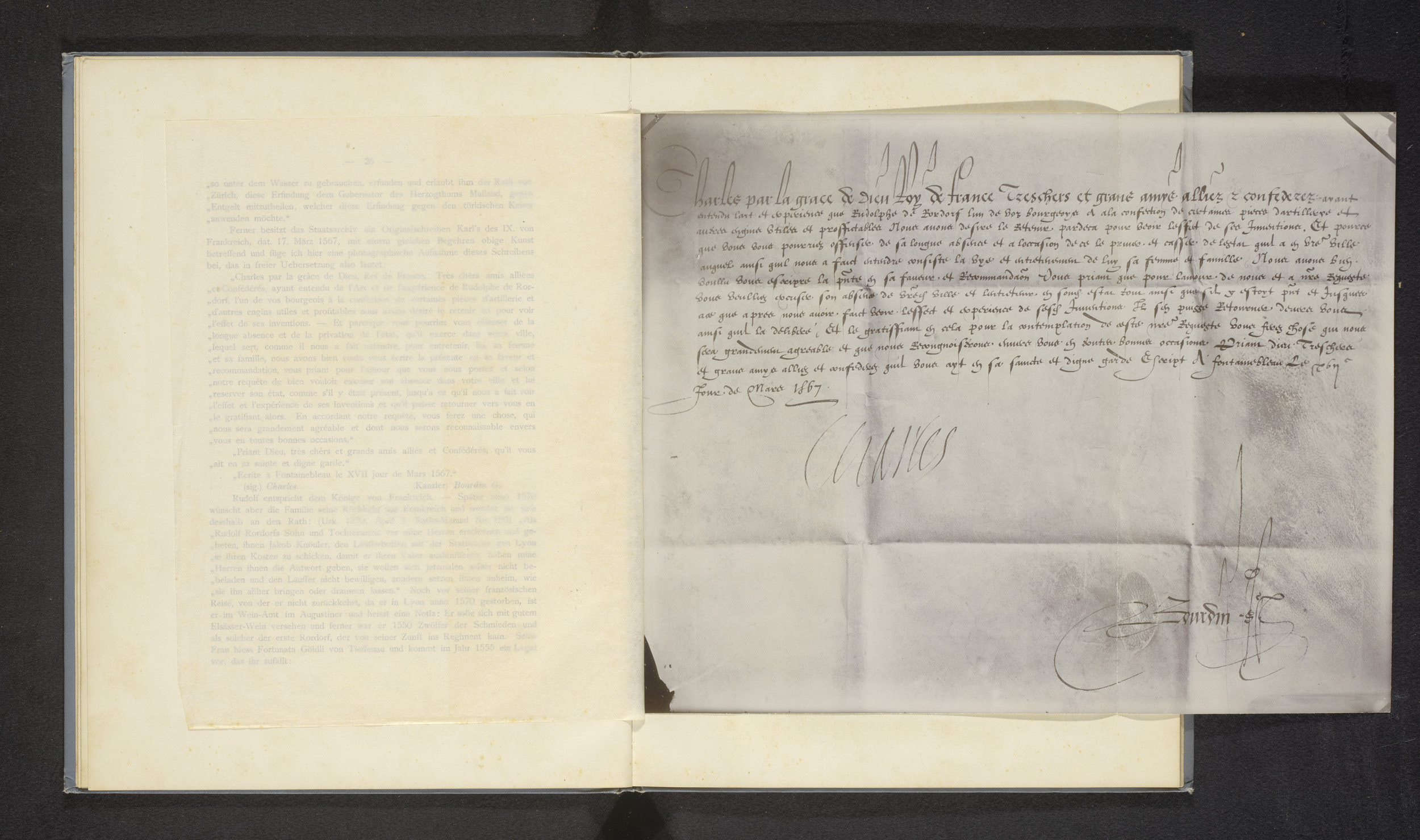 Fotoreproductie van een brief van Karel IX van Frank...