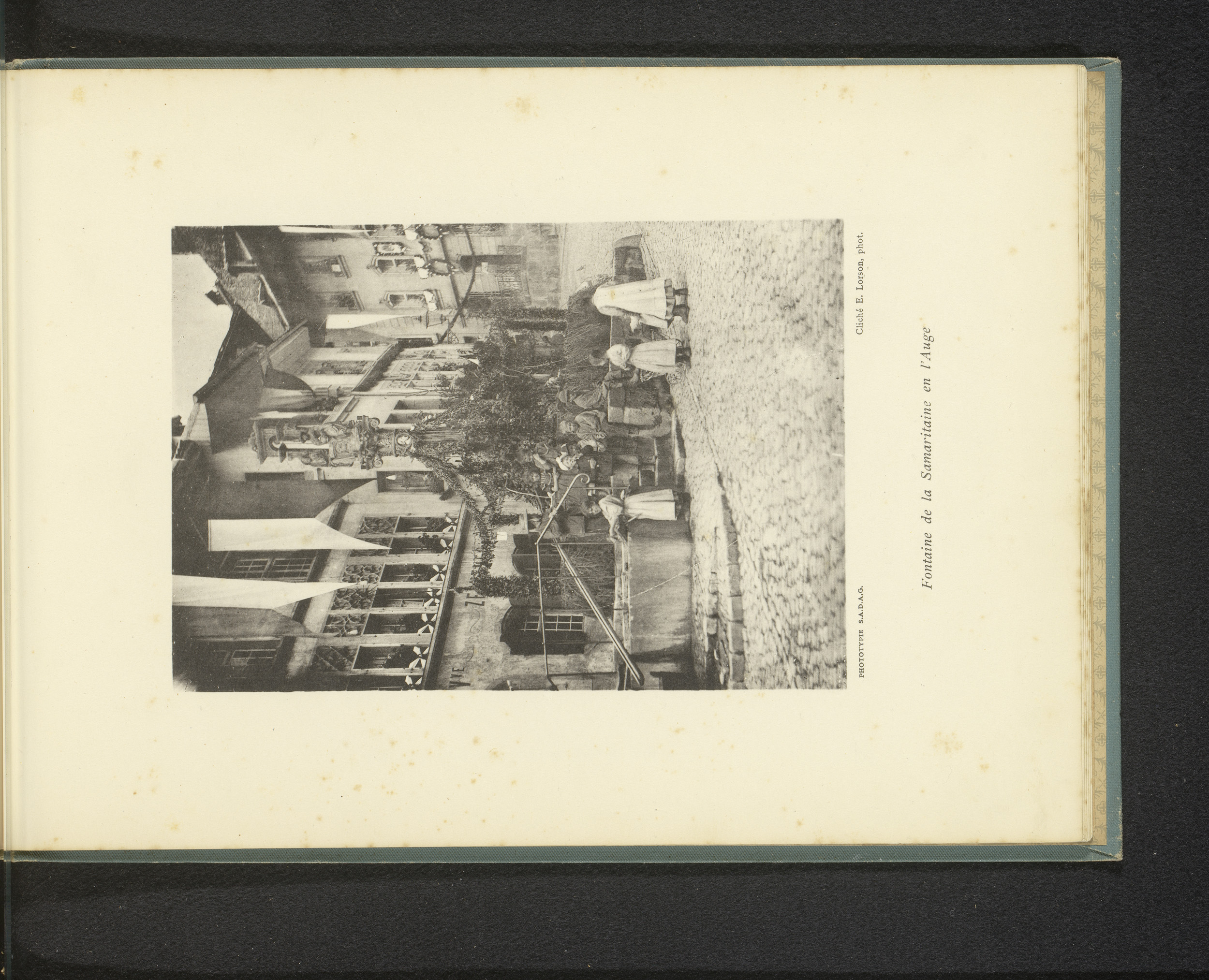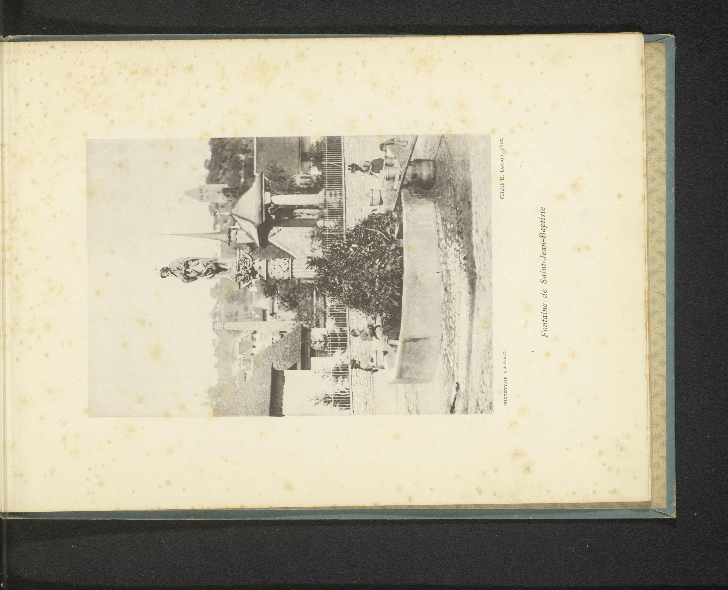 Fotoreproductie van een prent van een waterbron in h...