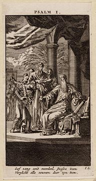 Een dienaar brengt David zijn harp, De boet-predikin...
