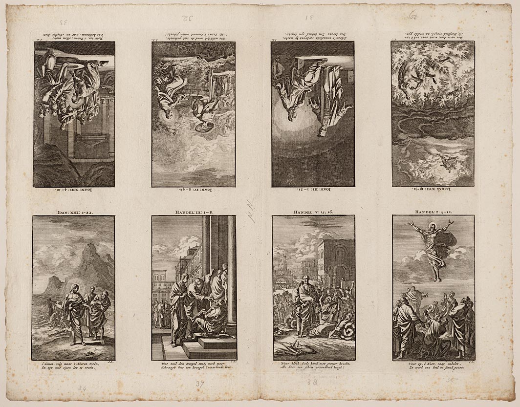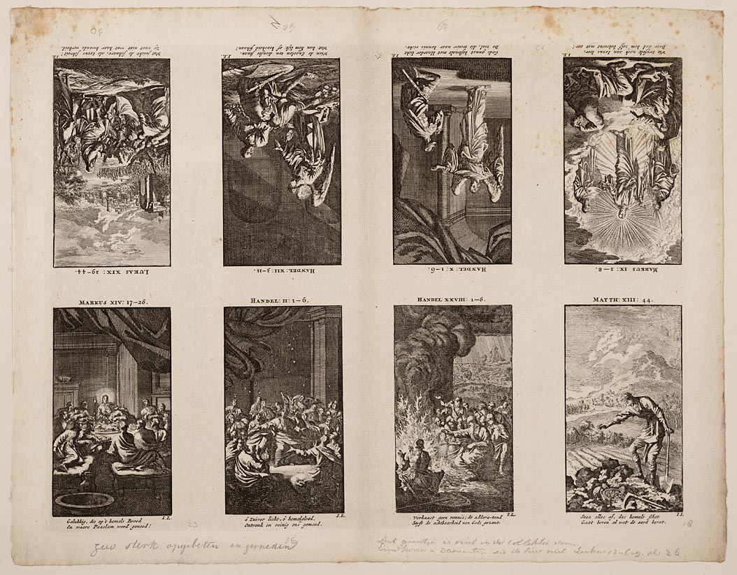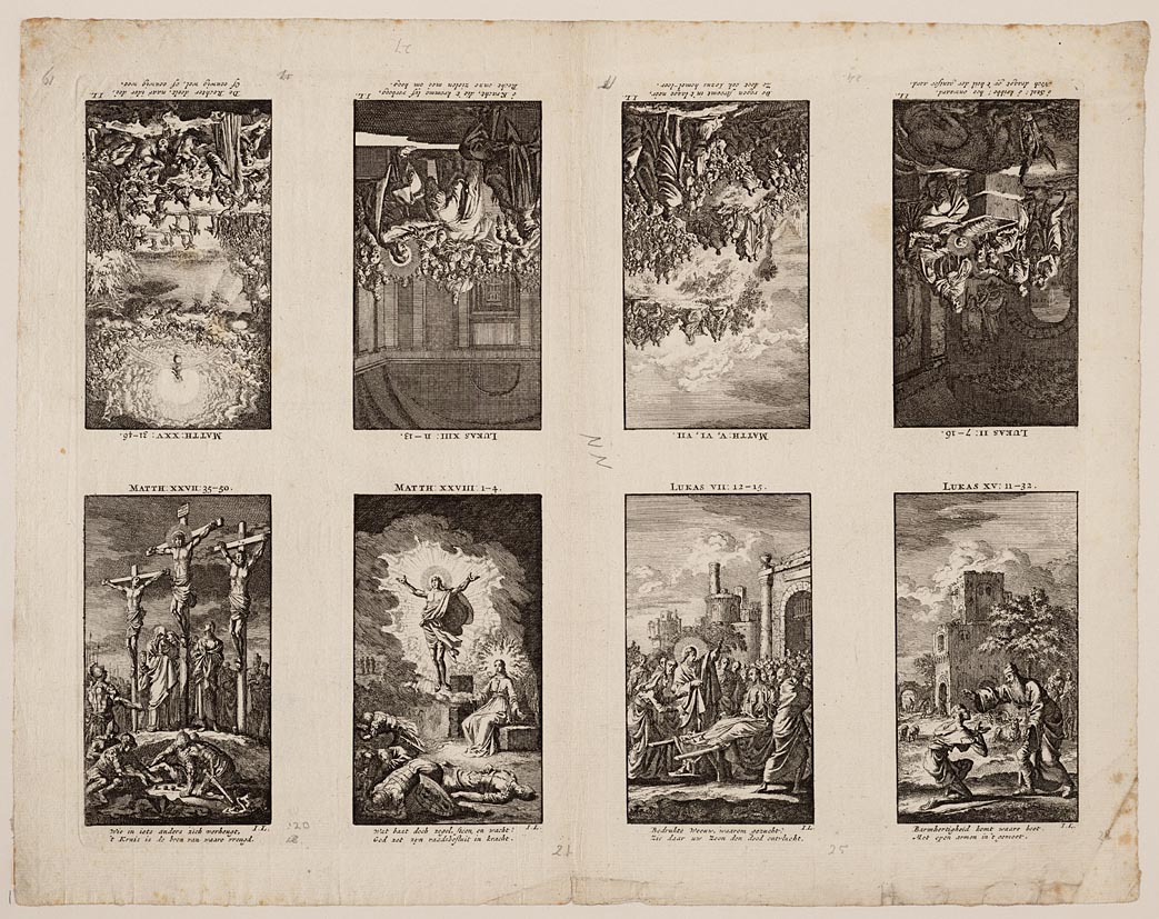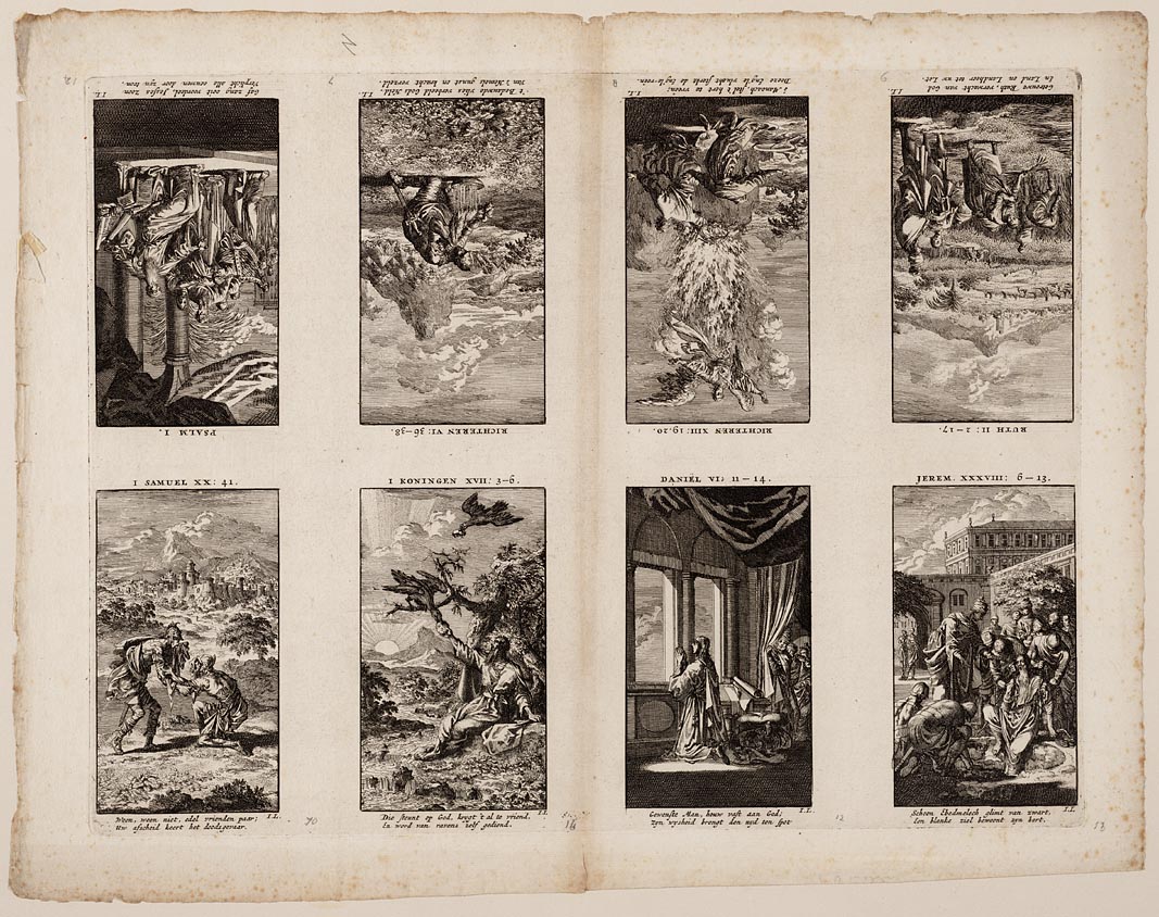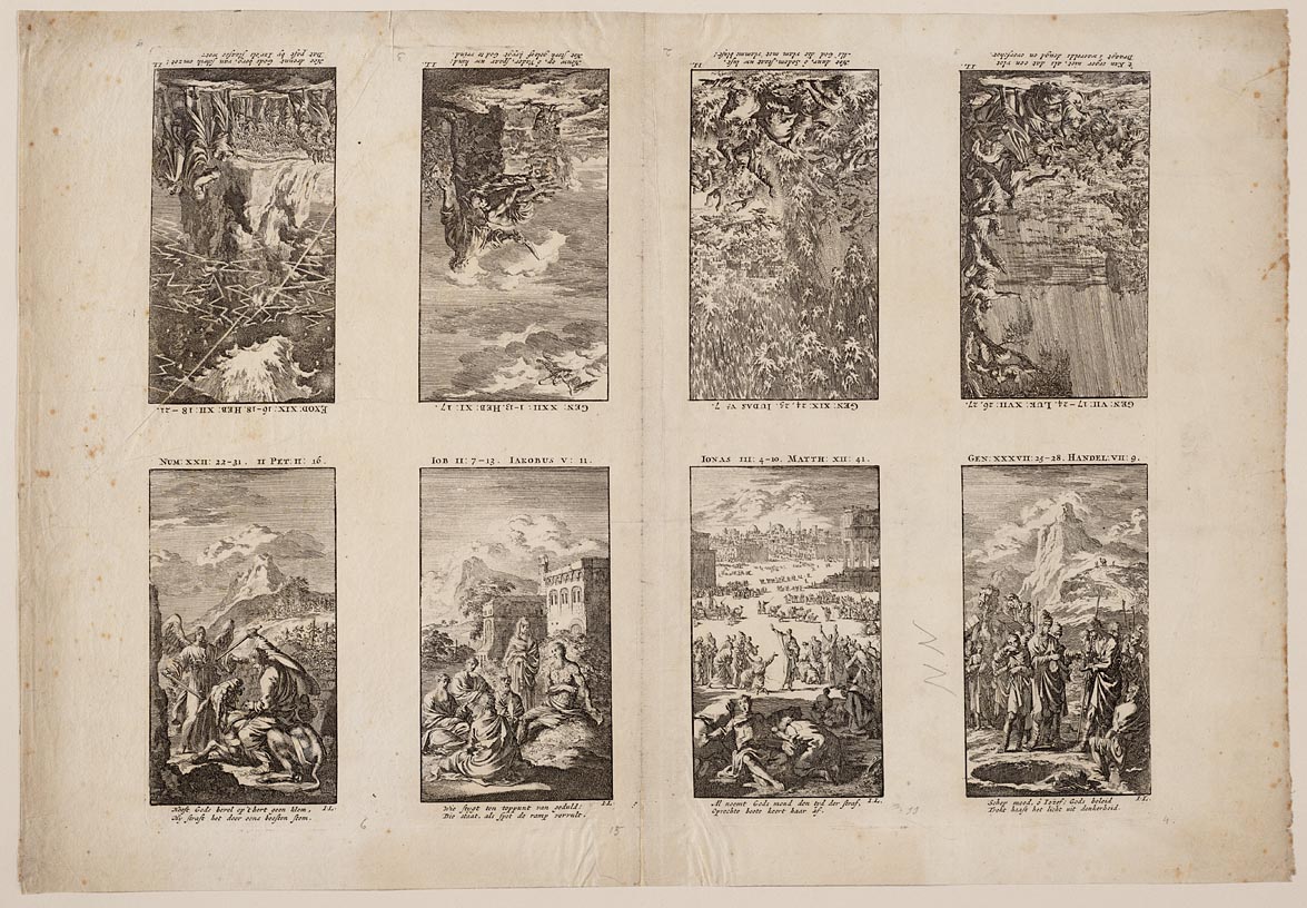 Blad met 8 prenten uit de tweede serie van 42 bijbel...