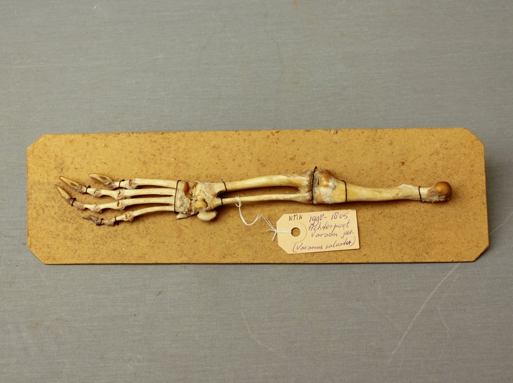 Watervaraan; skelet achterpoot; op strokarton