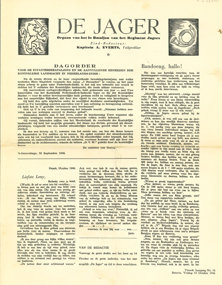 De Jager, 2de Jaargang, No 18, Batavia, 18 oktober 1946
