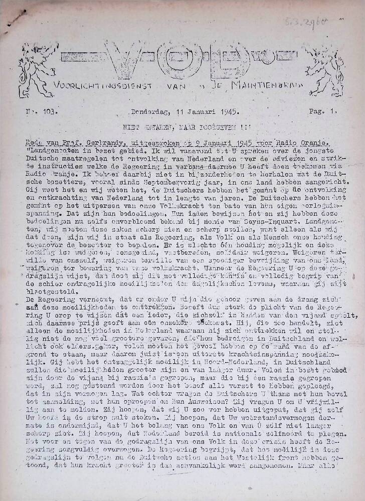 V.O.D. Voorlichtingsdienst van Je Maintiendrai, No. ...