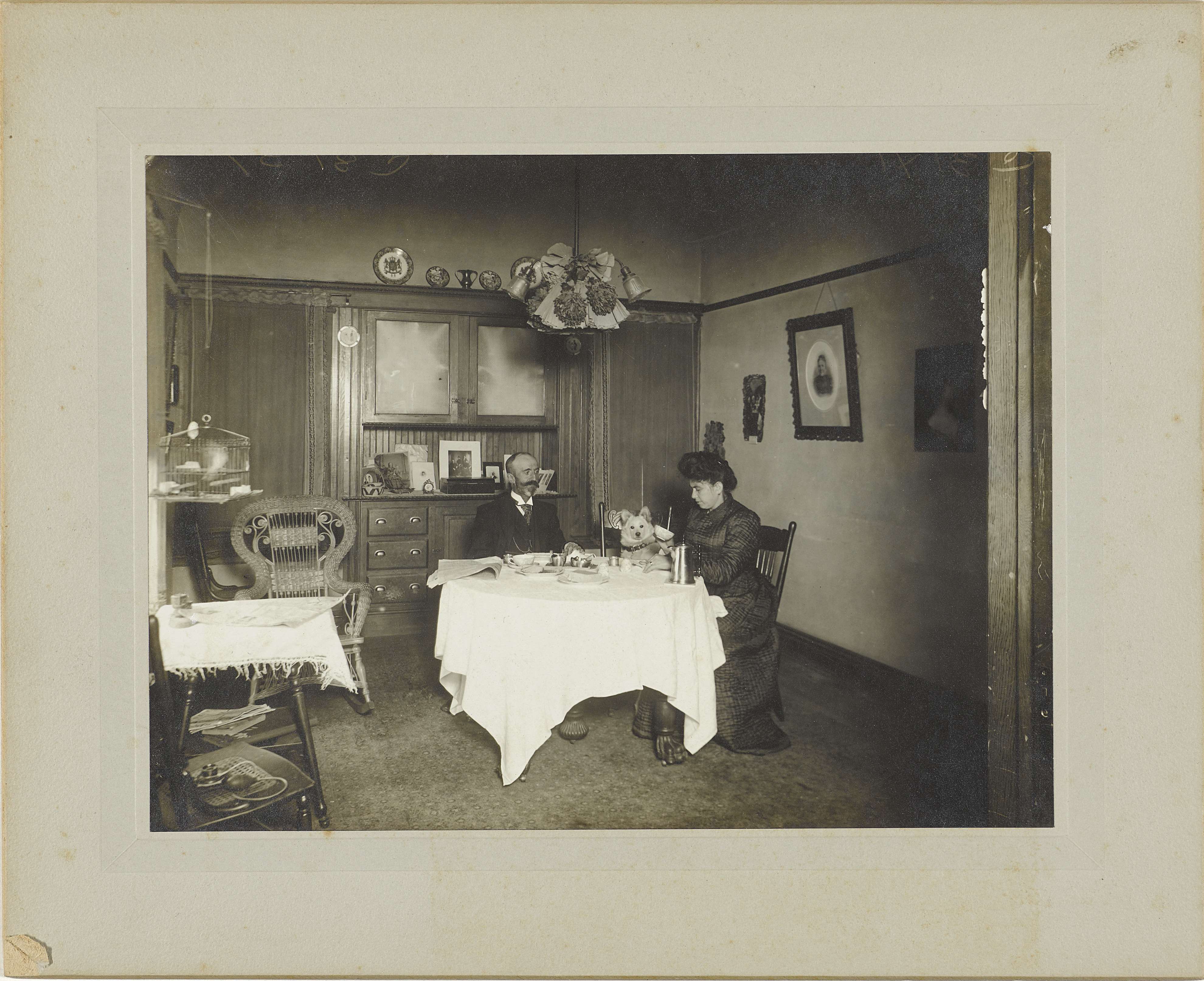 Man en vrouw met hond aan tafel in interieur in Los ...