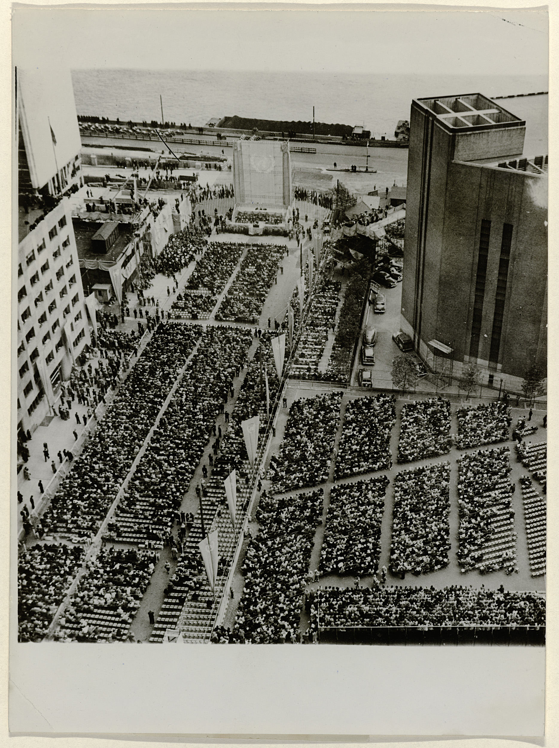 Gezicht op het hoofdkwartier van de Verenigde Naties...