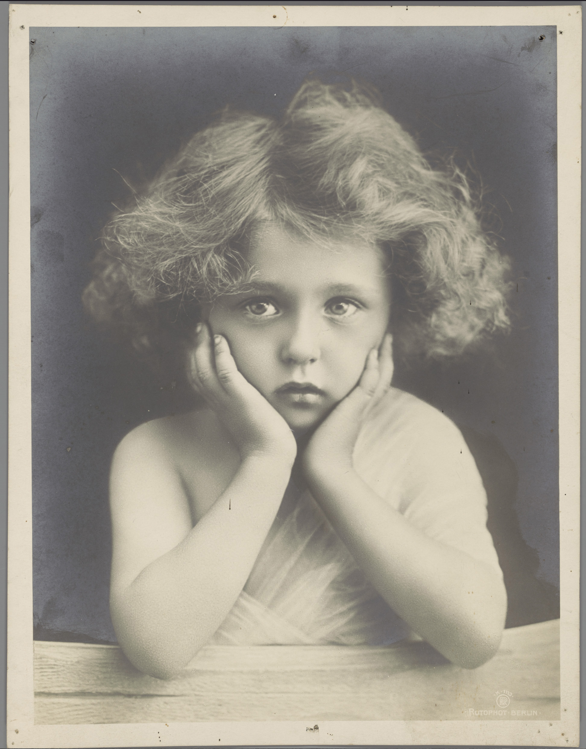 Portret van een onbekend kind met hoofd in de handen