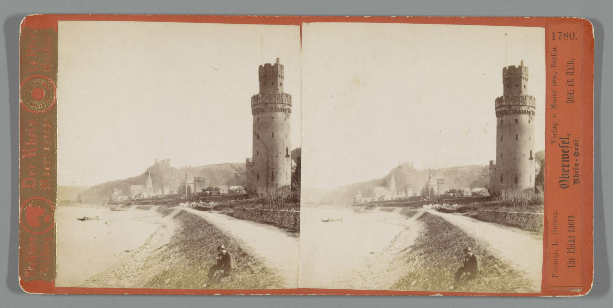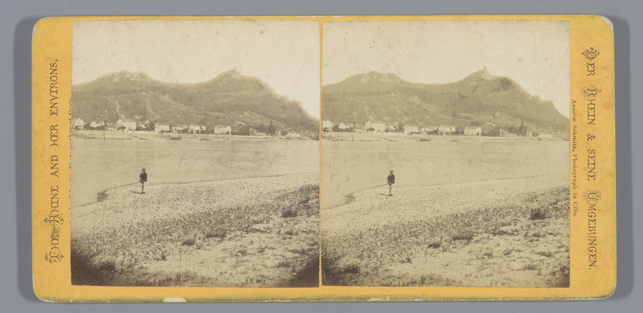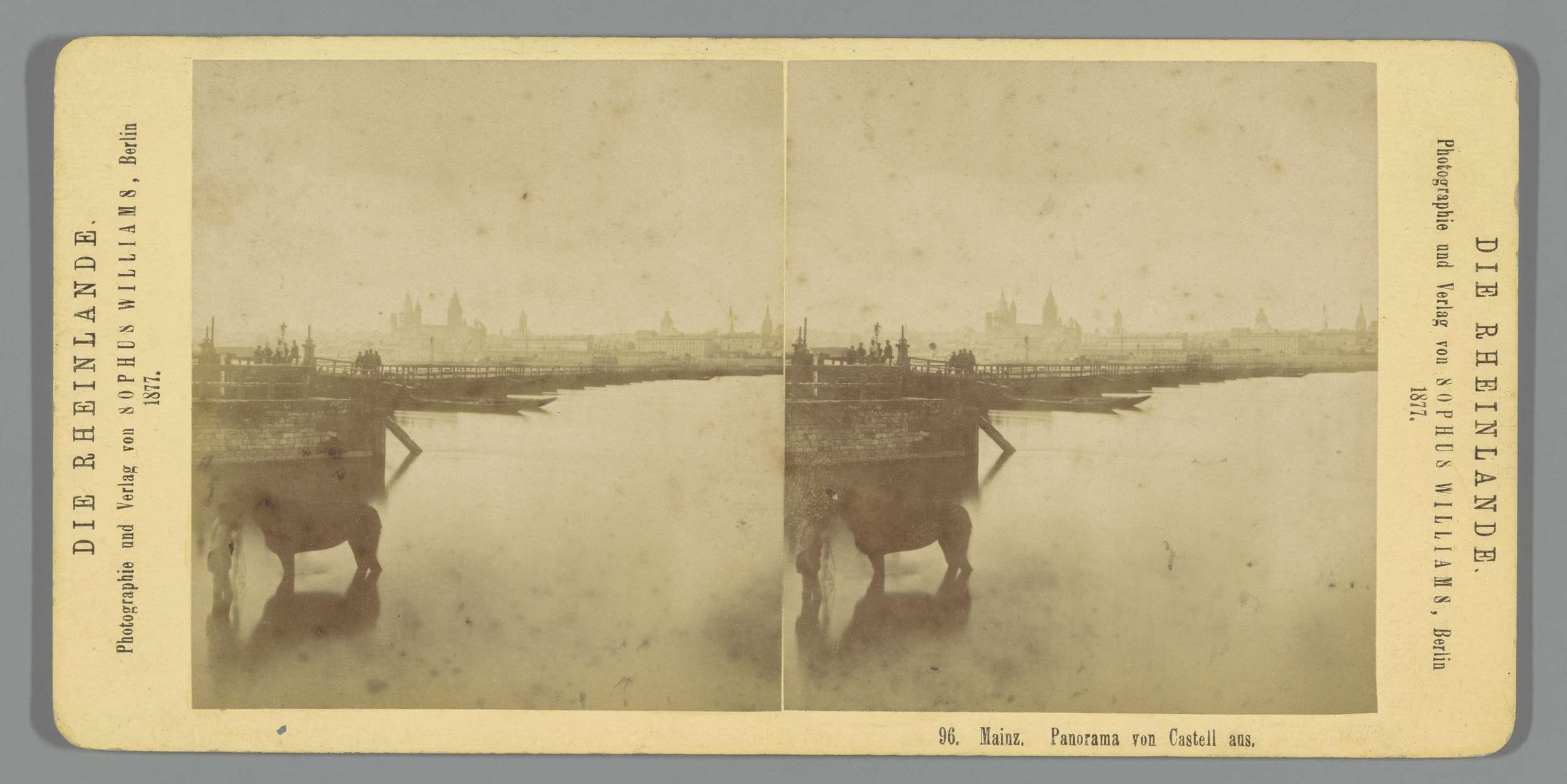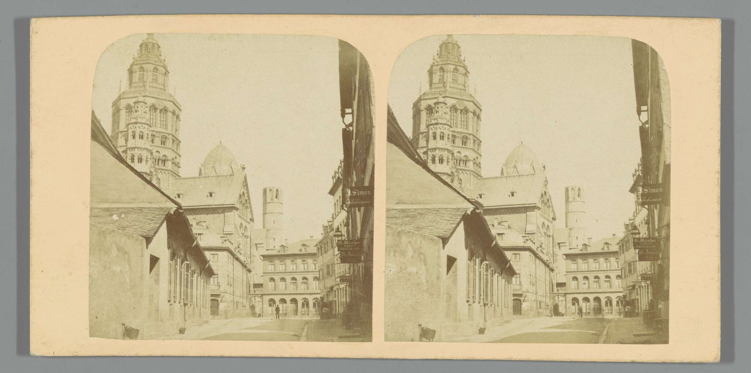 Gezicht op Mainz, met op de voorgrond een man met ee...