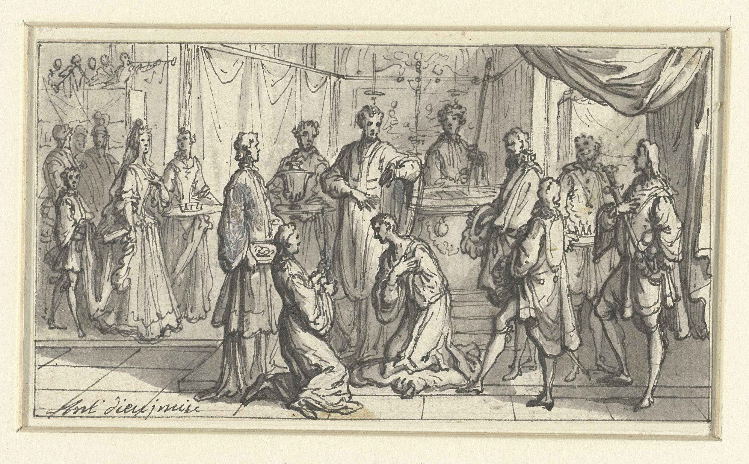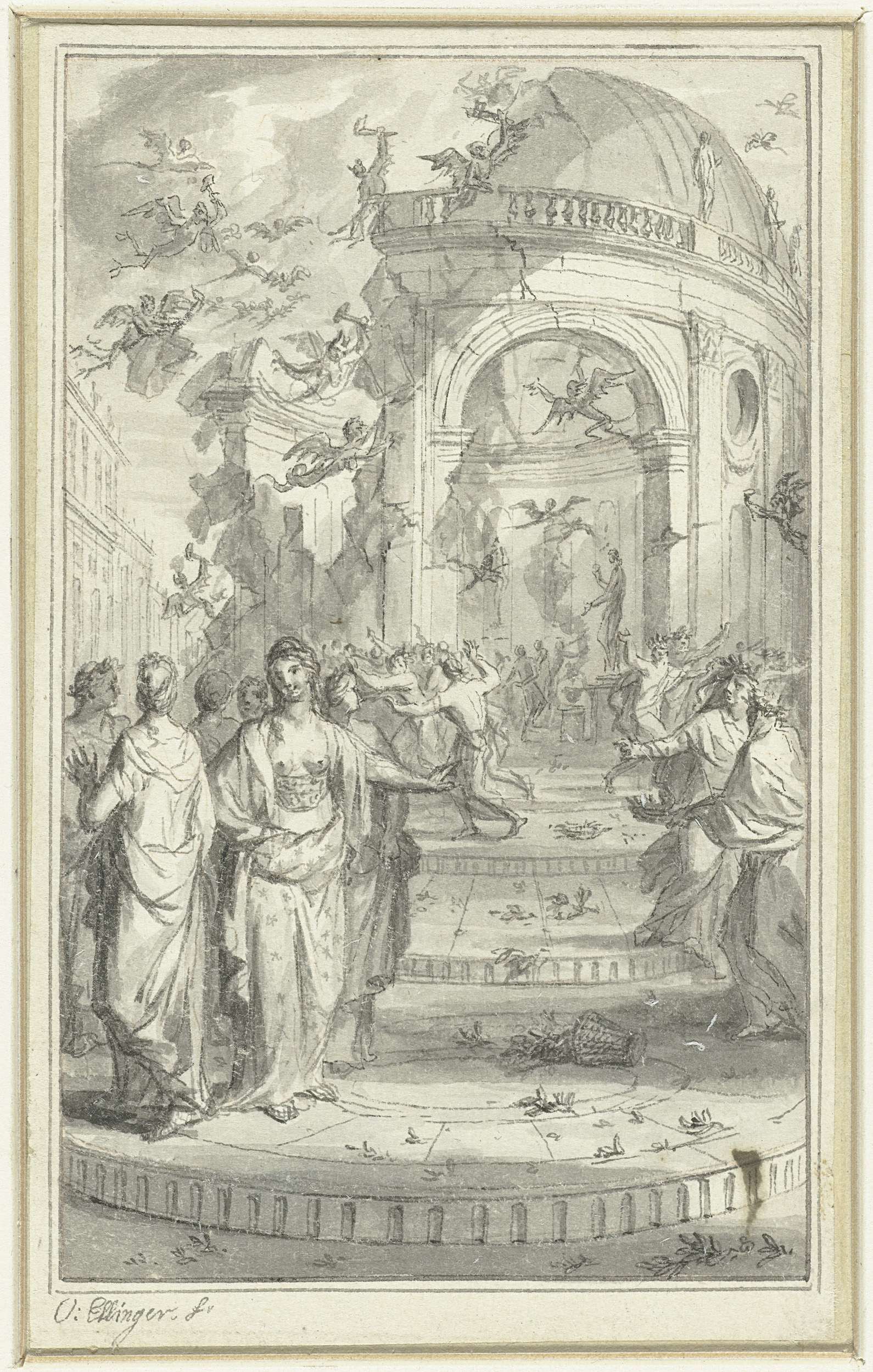 Ontwerp voor scène uit het blijspel De Nieuwe Waereld