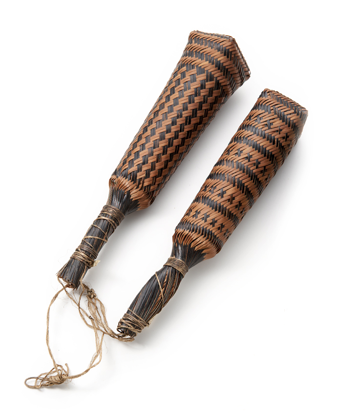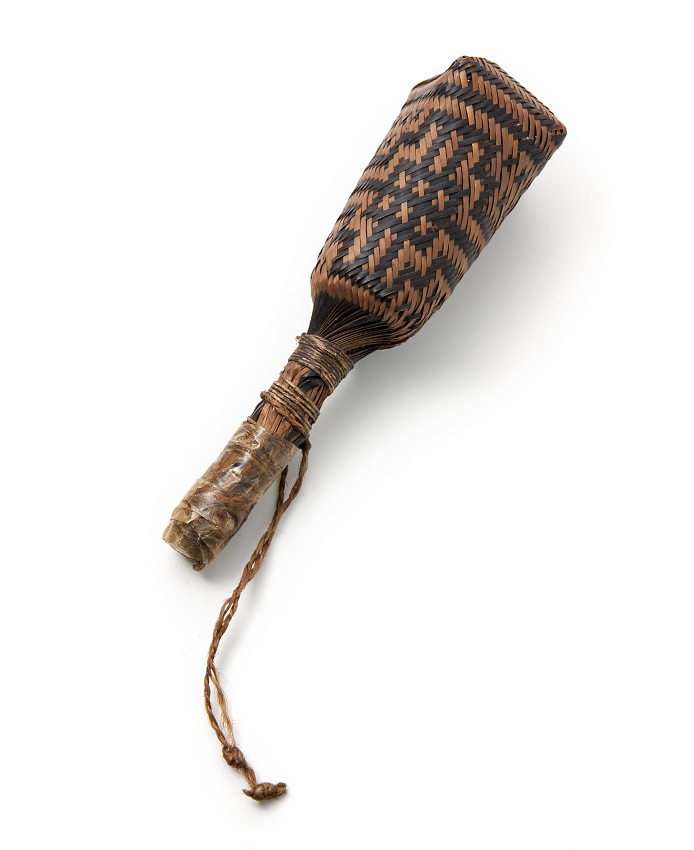 Gevlochten rammelaar met geometrische decoratie van ...