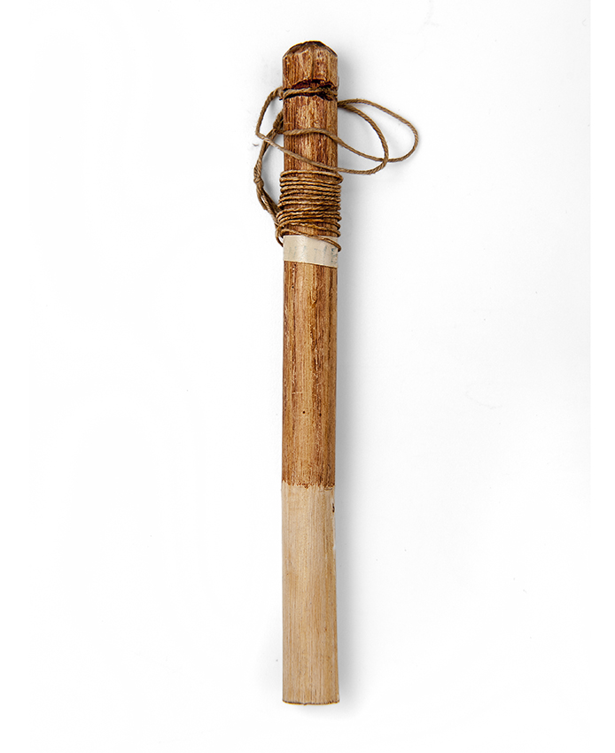 Stokje van een rammelaar omwonden met touw