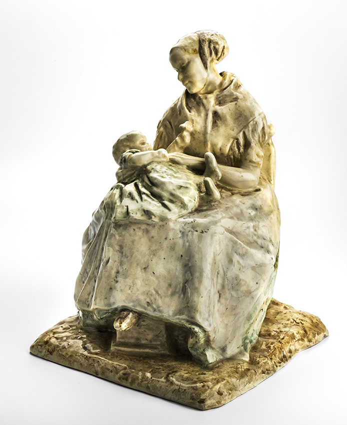 Porseleinen beeld van vissersvrouw met kind