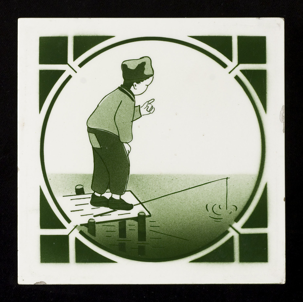 Tegel in onderglazuur, voorstellende een jongen en e...