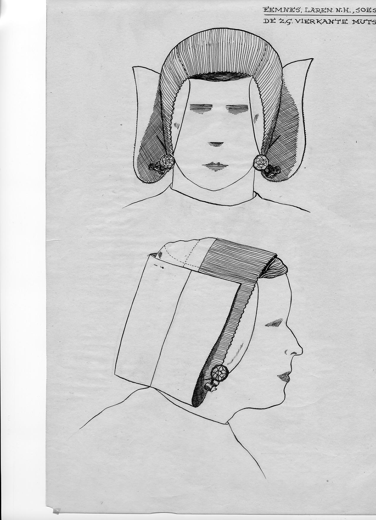 Tekening van de vierkante muts, Eemnes, Laren en Soe...