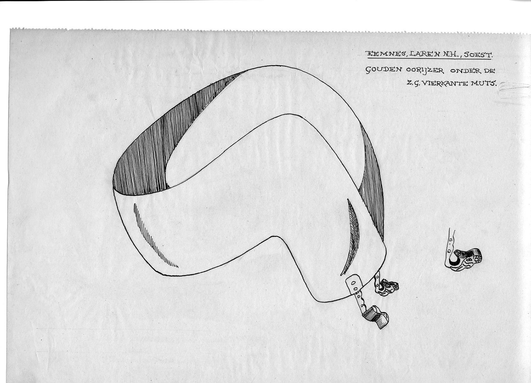 Tekening van gouden oorijzer, Eemnes, Laren en Soest...