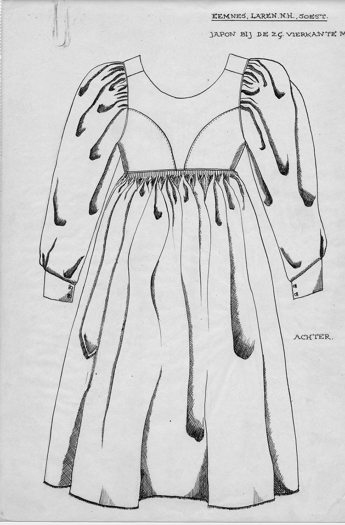 Tekening van achterzijde japon uit Eemnes, Laren en ...