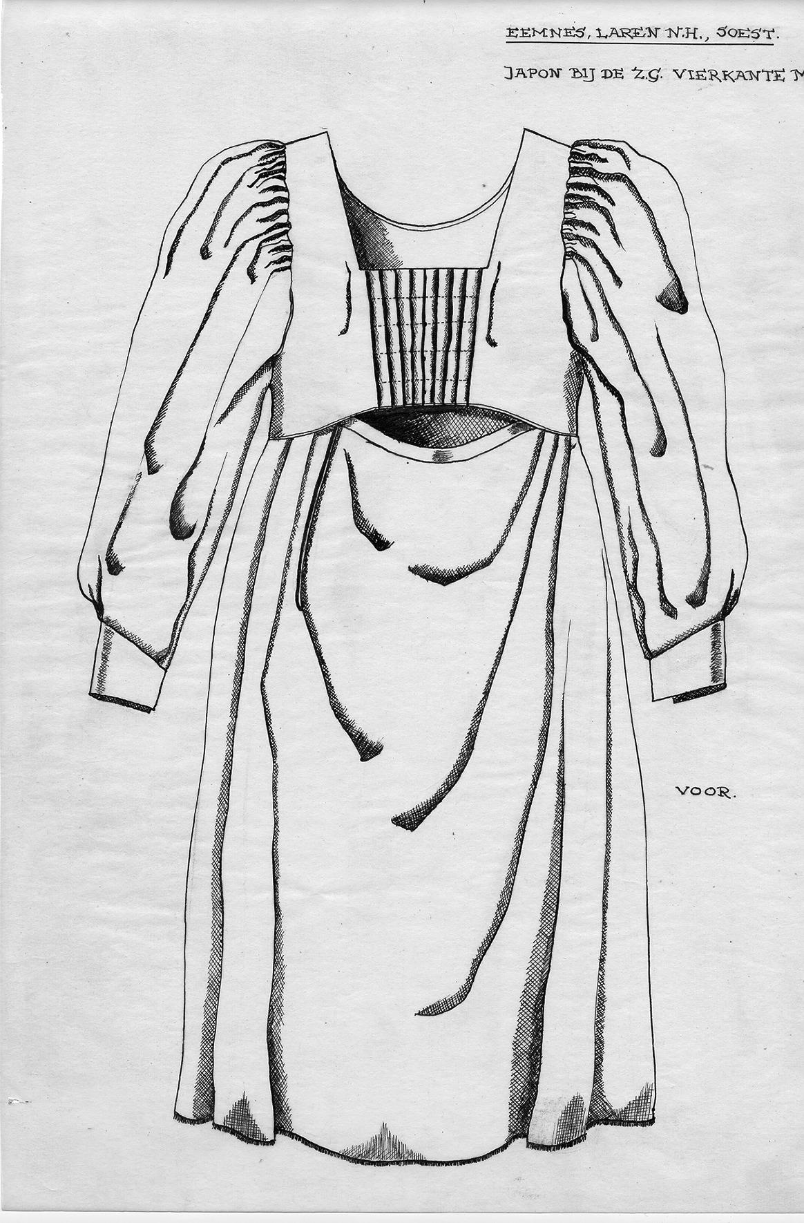 Tekening van voorzijde japon, Eemnes, Laren en Soest...