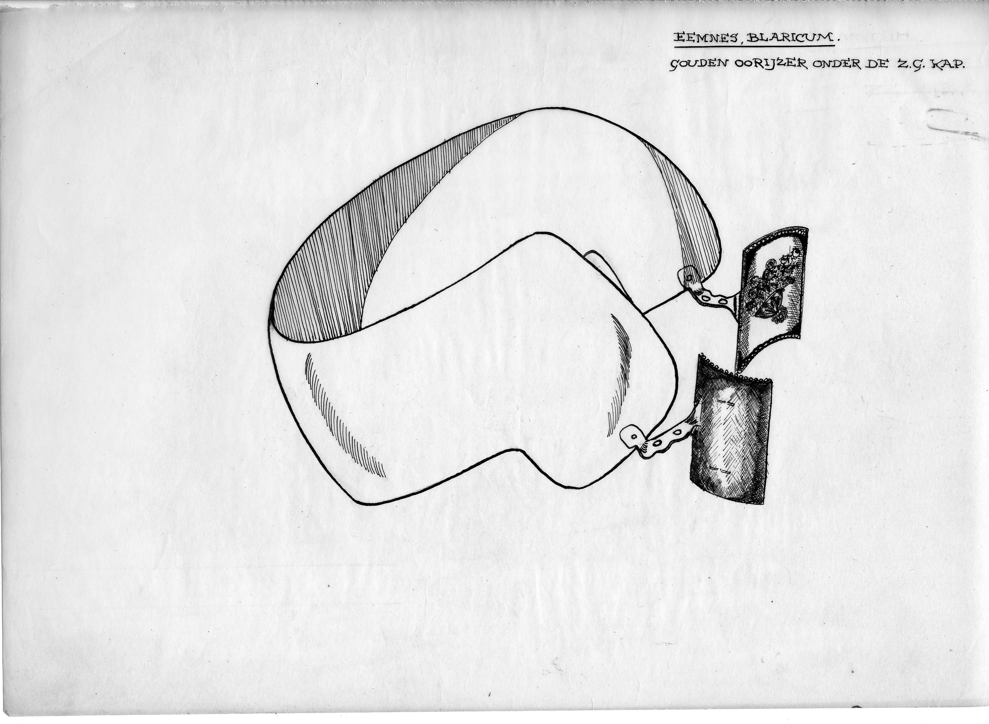 Tekening van gouden oorijzer, Eemnes en Blaricum (op...