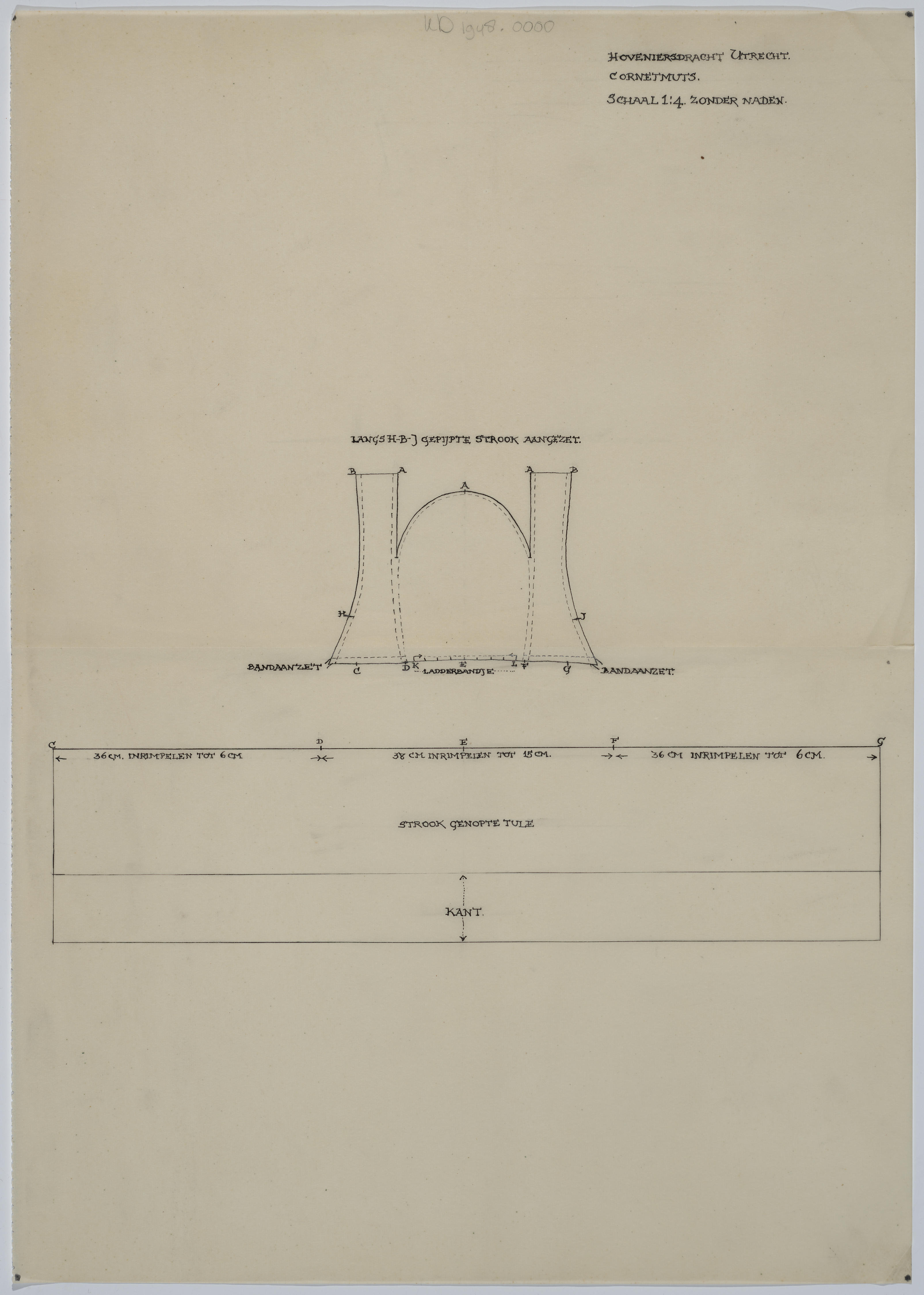 Patroontekening kornetmuts, vrouw Utrecht (patroonte...