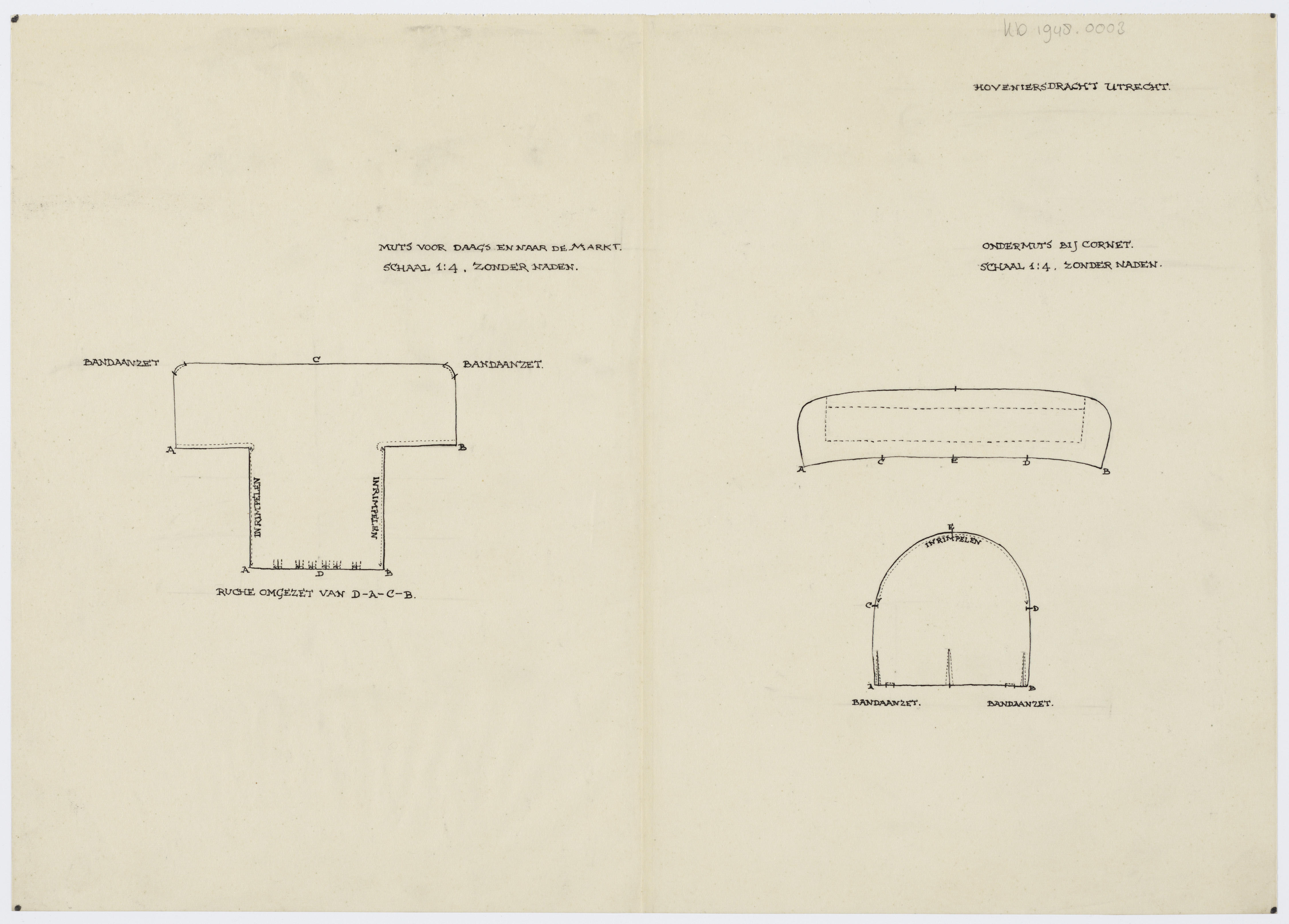 Patroontekening kornetmuts, vrouw Utrecht (patroonte...