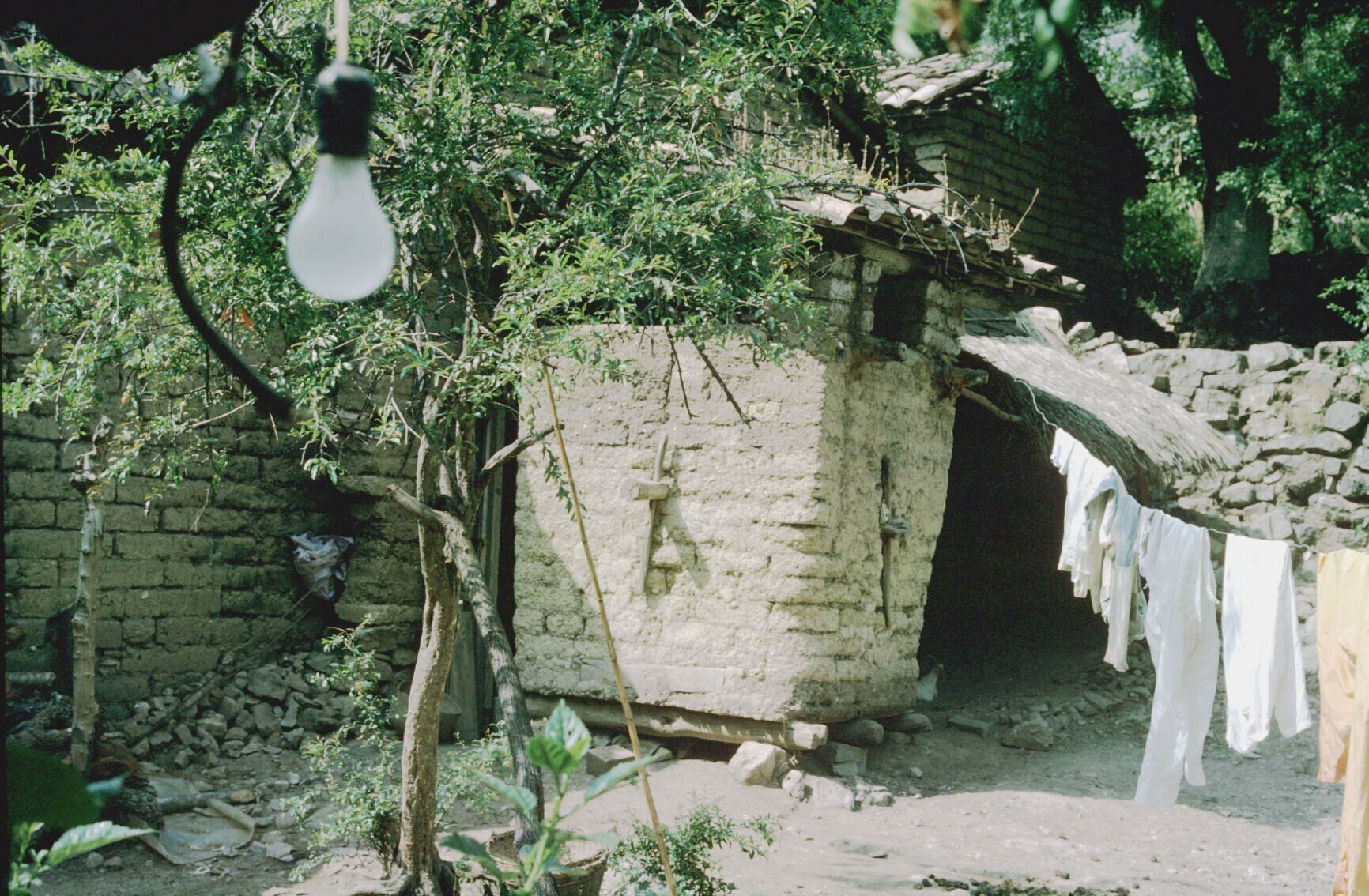 wasgoed en adobe bijgebouwtje op erf van wever Celac...