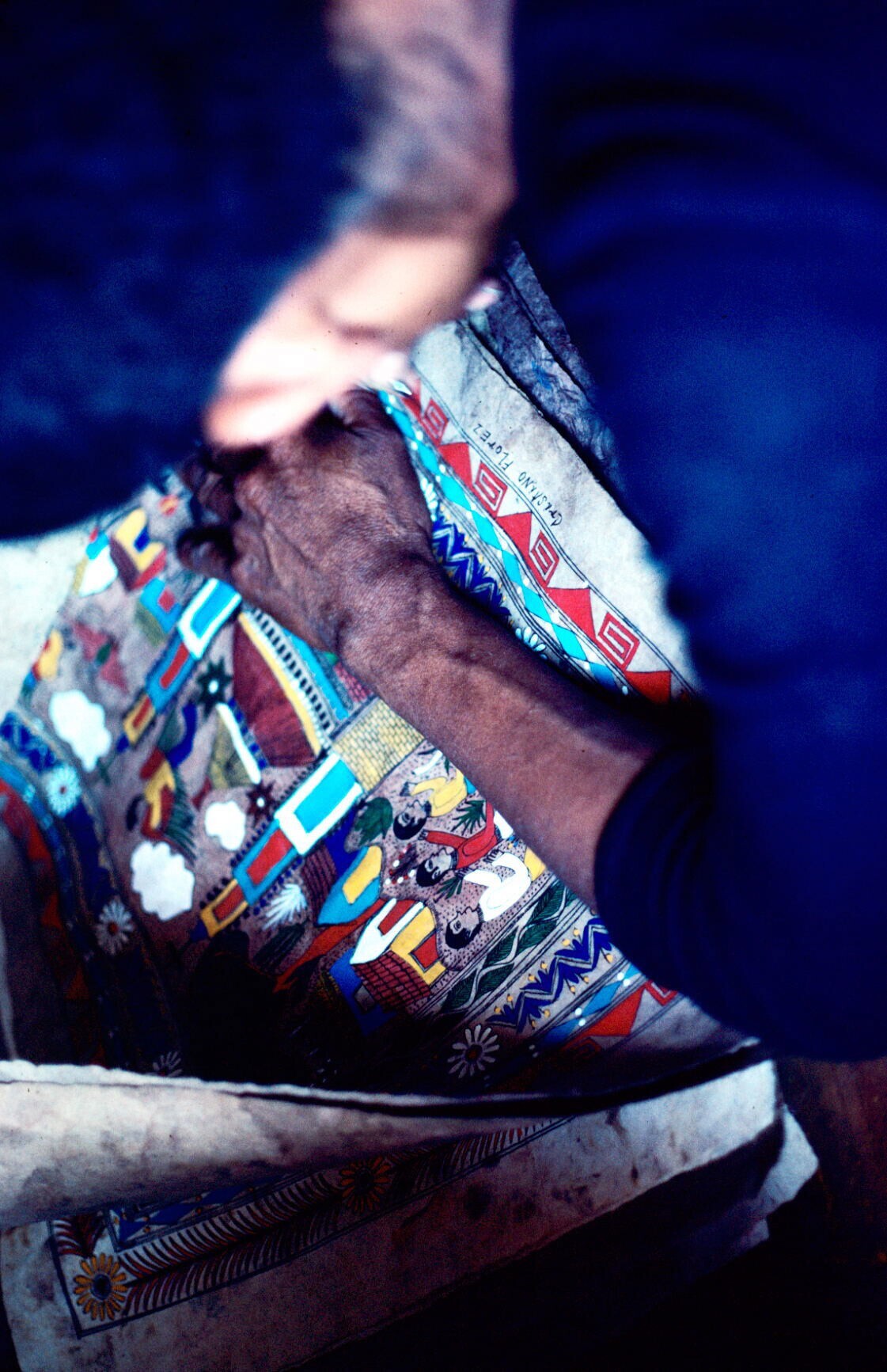 amate-schilder Cristino Flores Medina aan het werk