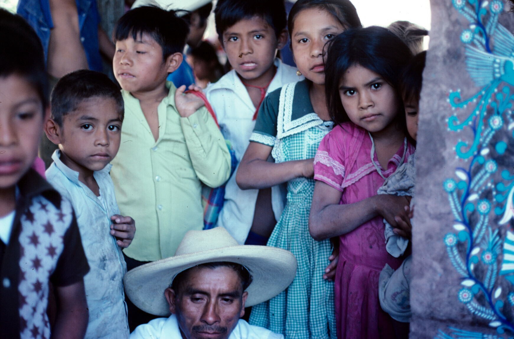 man en groep kinderen bij amate-schildering
