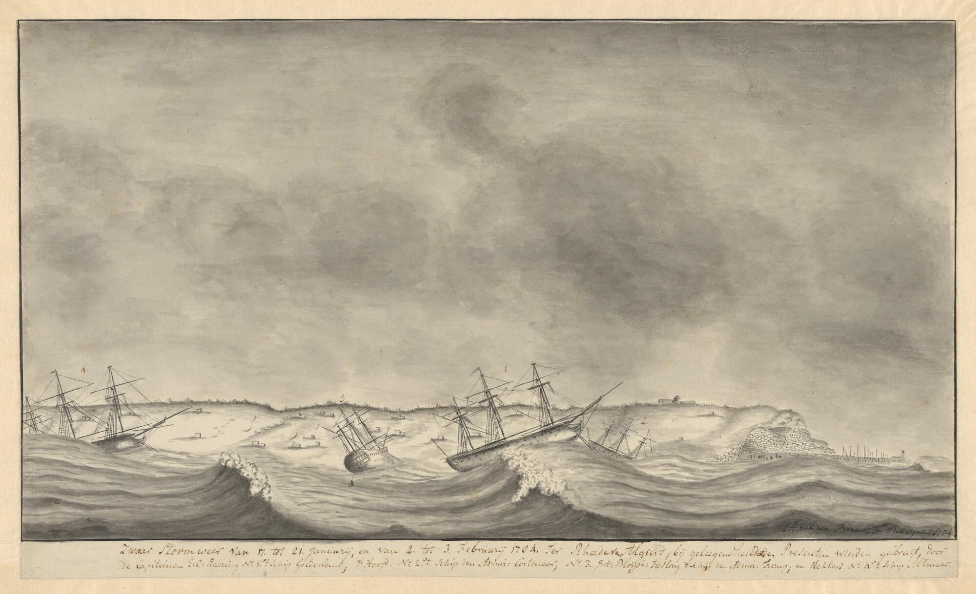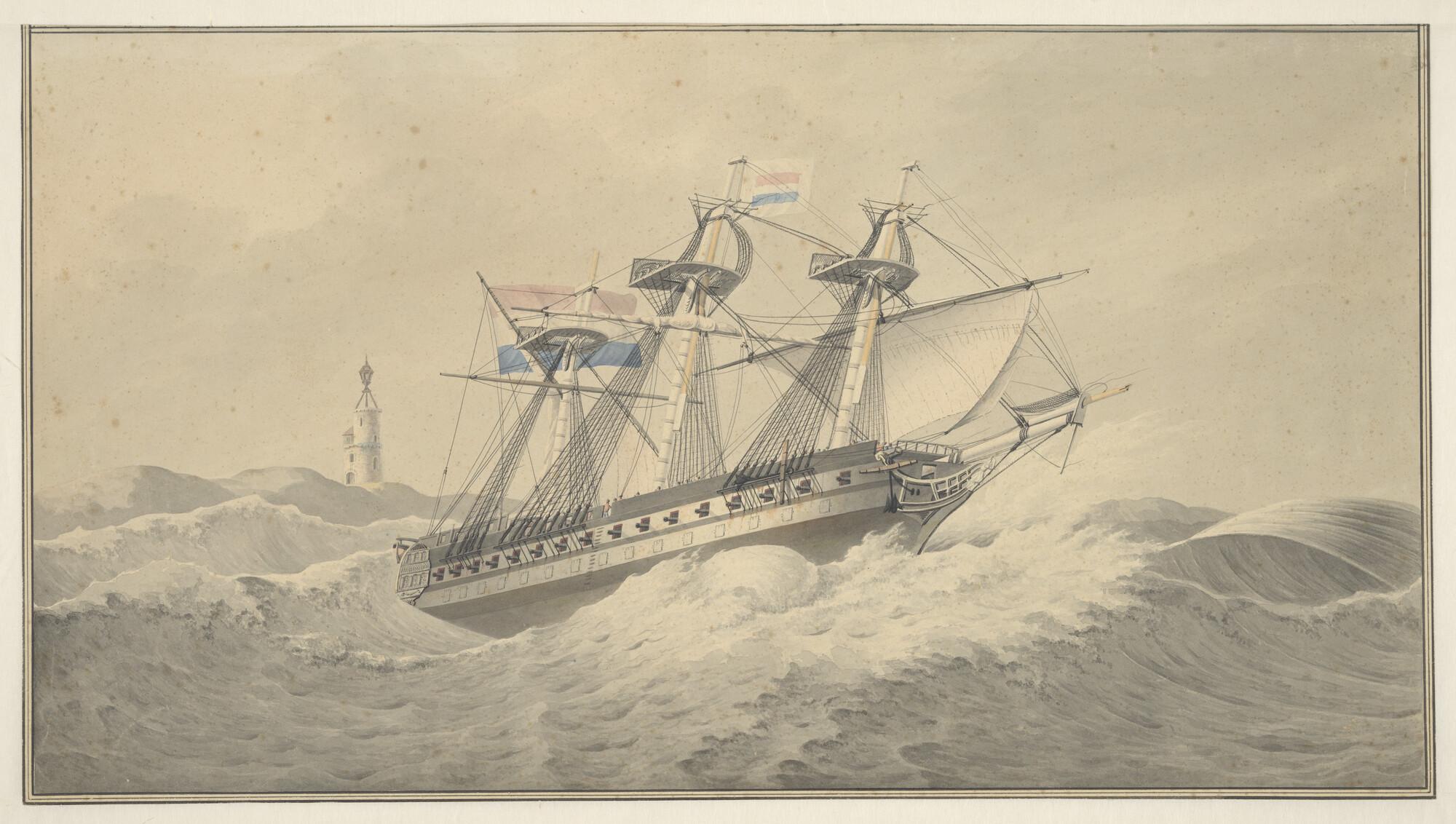 Nederlands eskader in zwaar weer ter rede van Algier...