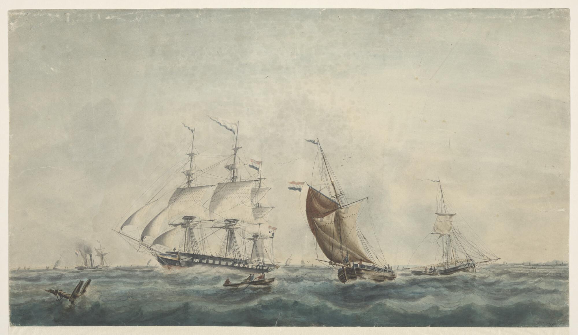Een raderstoomschip, een fregatschip, een kanonneerb...
