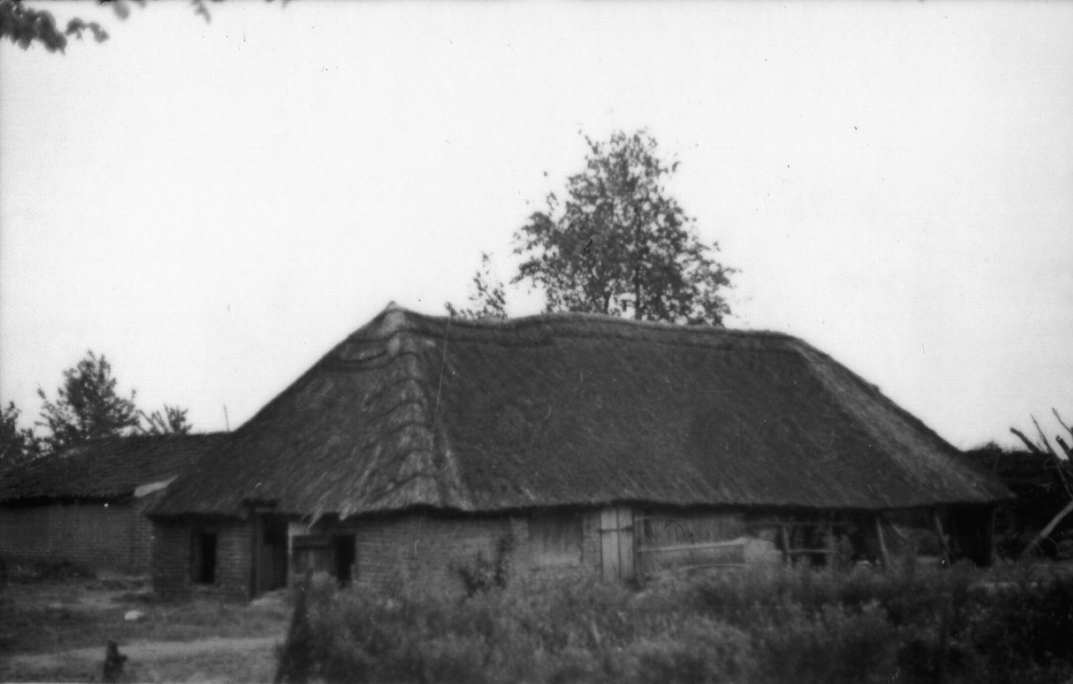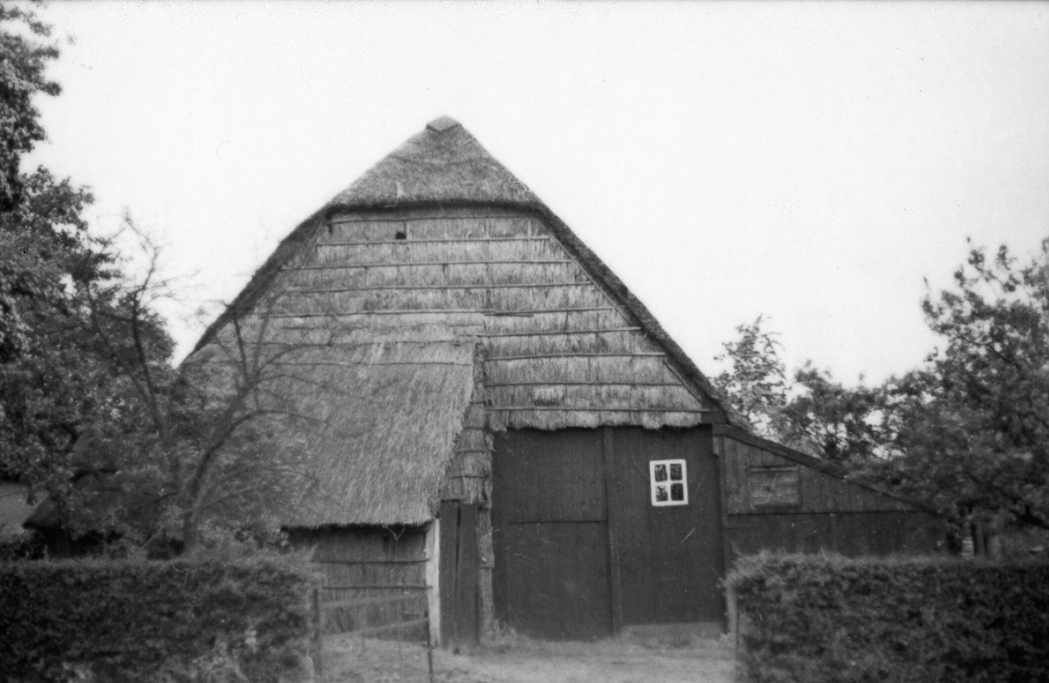 Schuur met strowanden, Drunen, 1938 (zwart-wit foto)