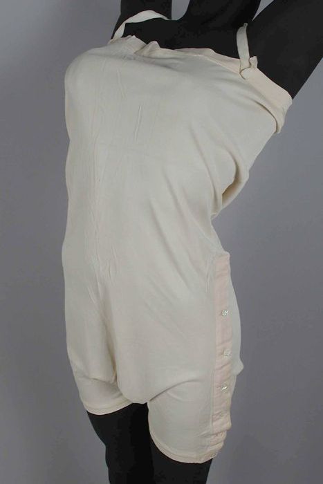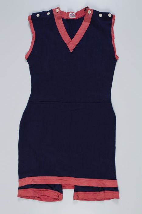 Badpak van donkerblauw tricot wol met korte pijpen e...