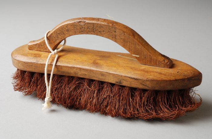 Borstel met plat handvat met "Magazijn de Kroon - Sc...