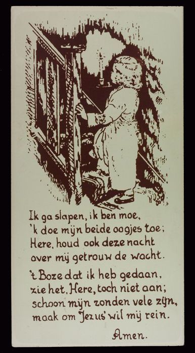 Rechthoekige tegel met nachtgebed, door ds. J. De Li...