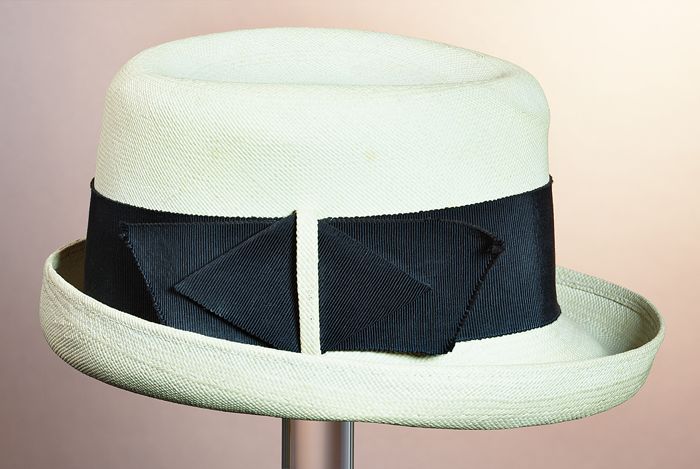 Dameshoed van naturelkleurig gladstro, opstaande ran...