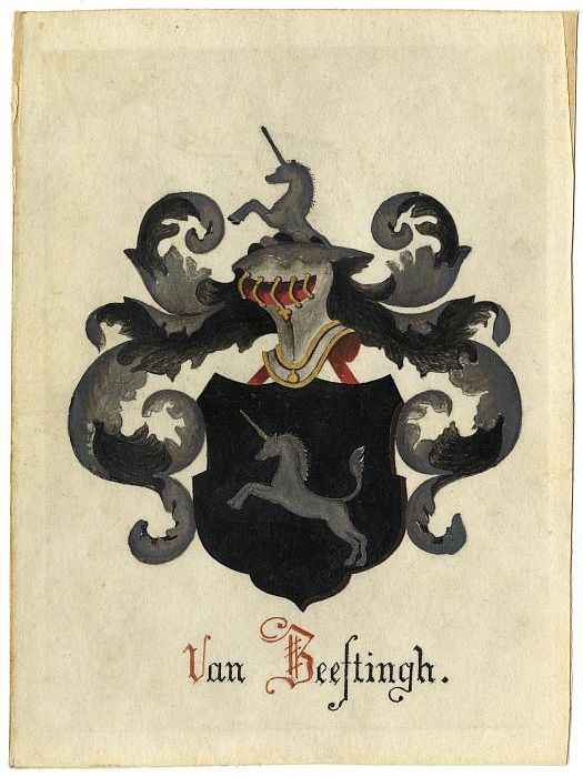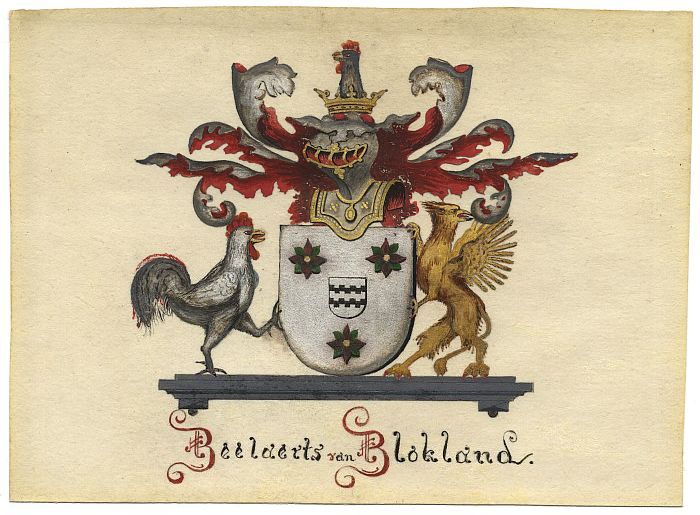 Wapen geslacht Van Vollenhoven in waterverf op papier