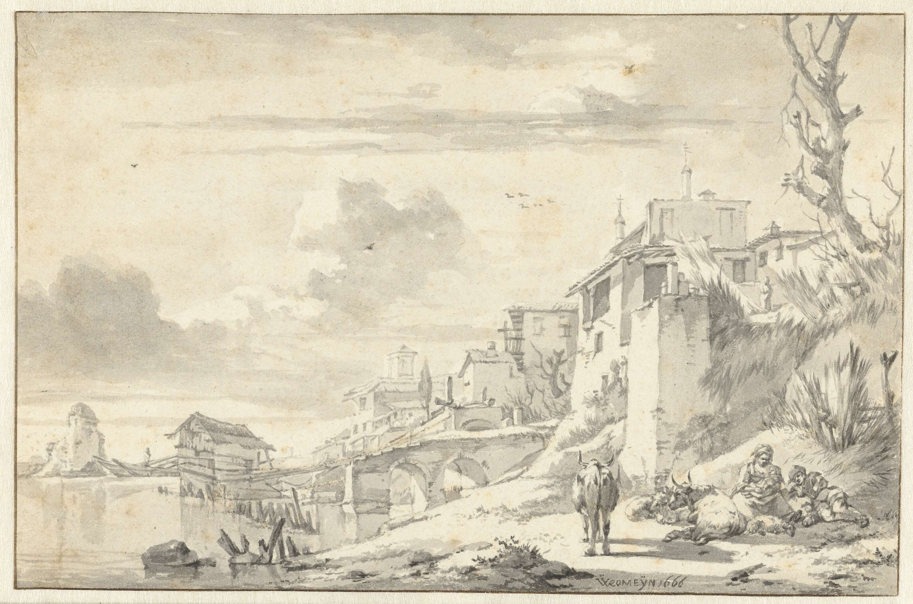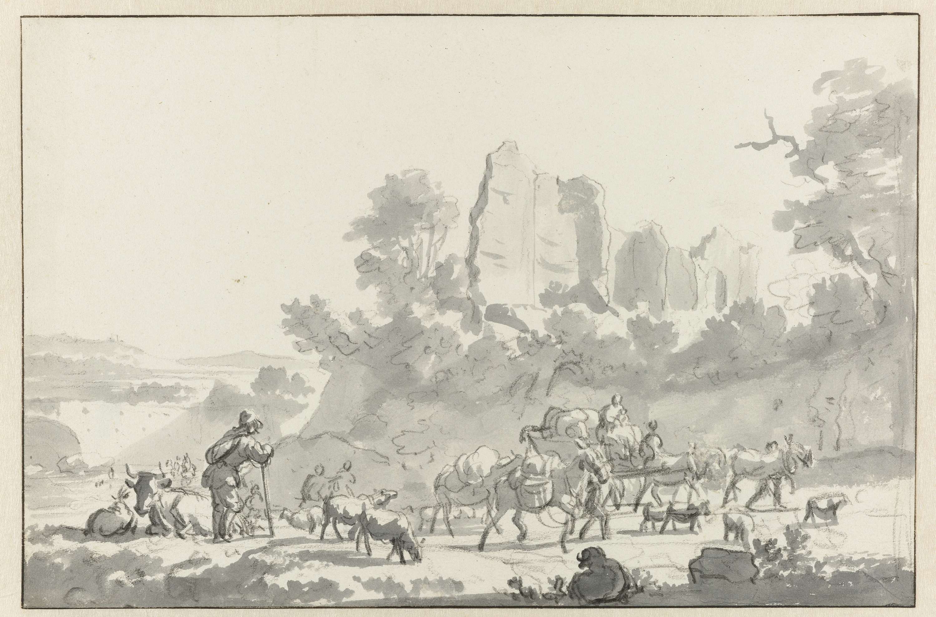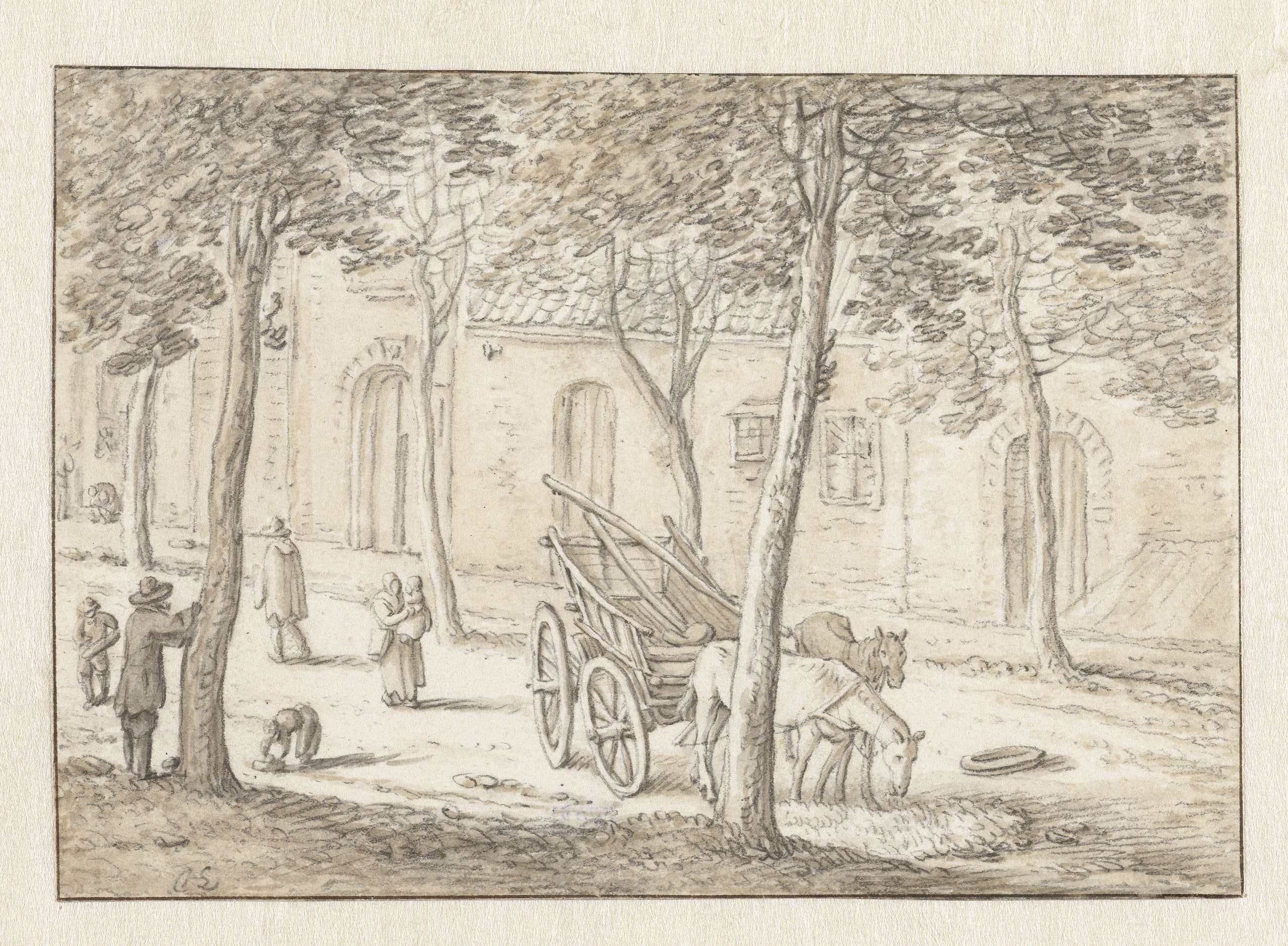 Wooded Landscape with a Cart and Horses Crossing a Ford