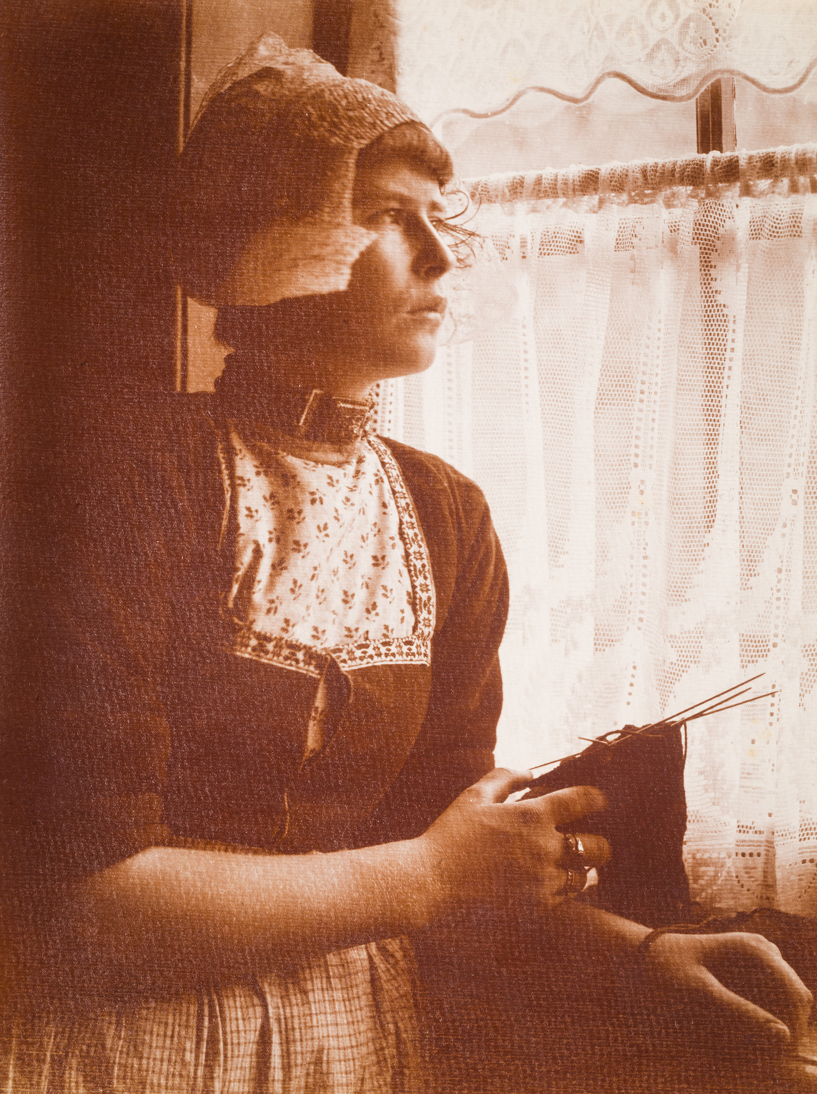 Interieur met twee Volendammer vrouwen