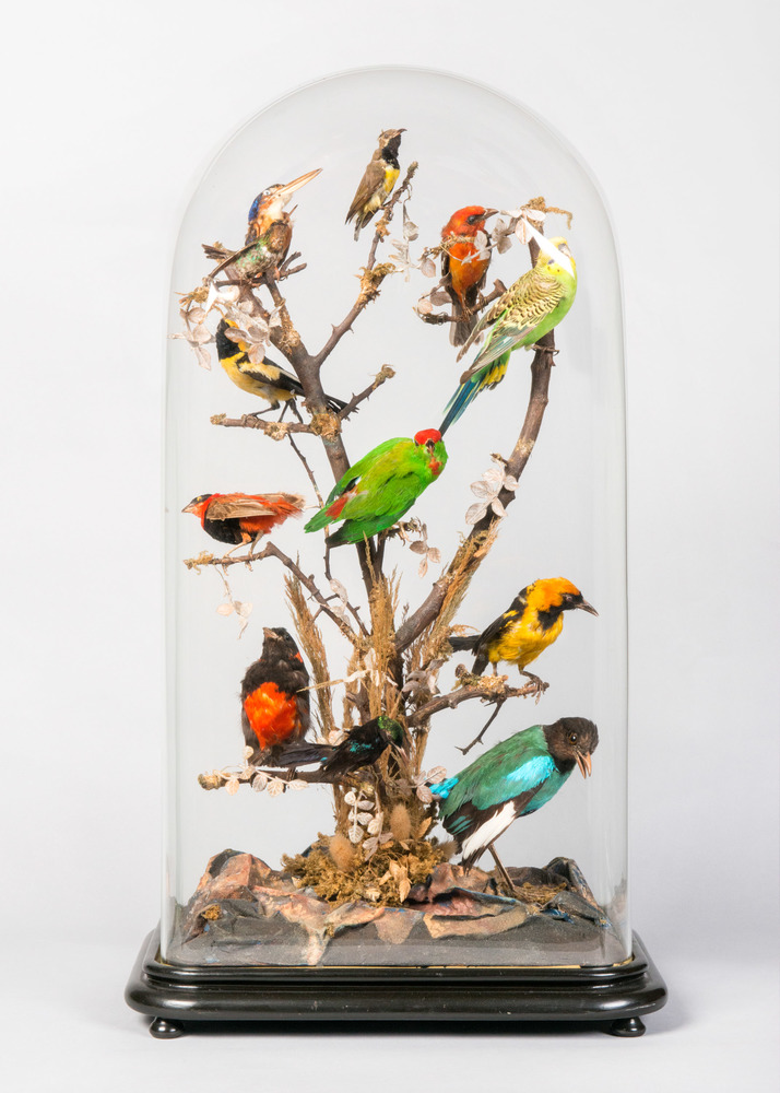 Exotische vogels onder een glazen stolp