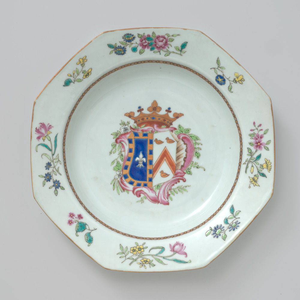 Porseleinen soepbord met het familiewapen Crommelin