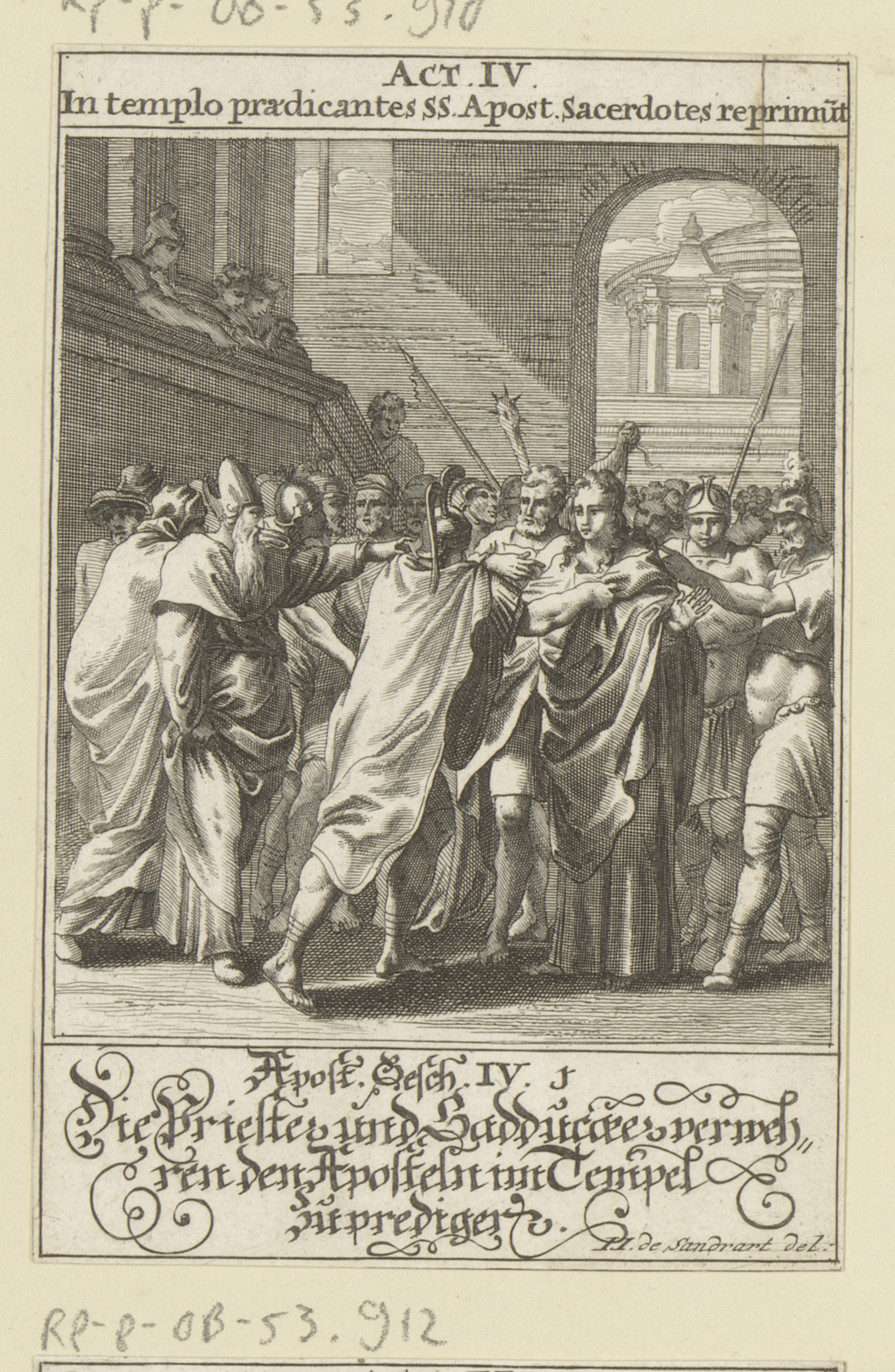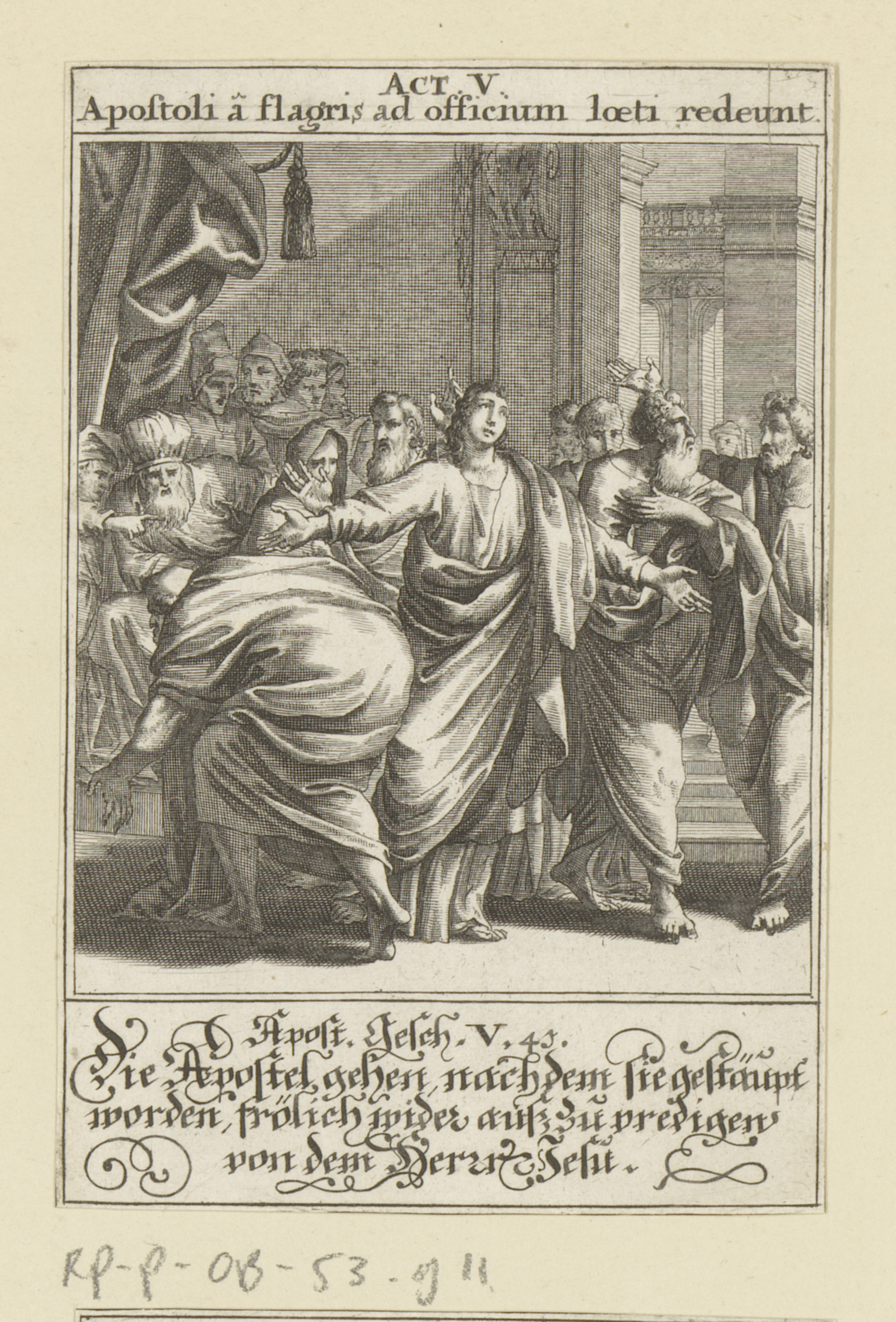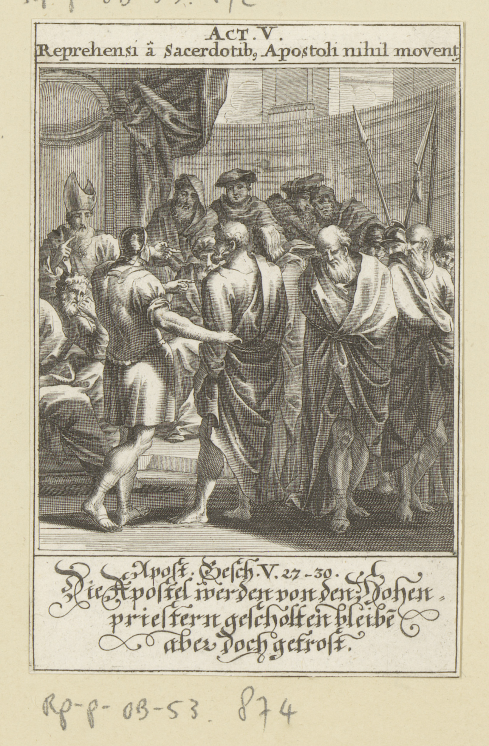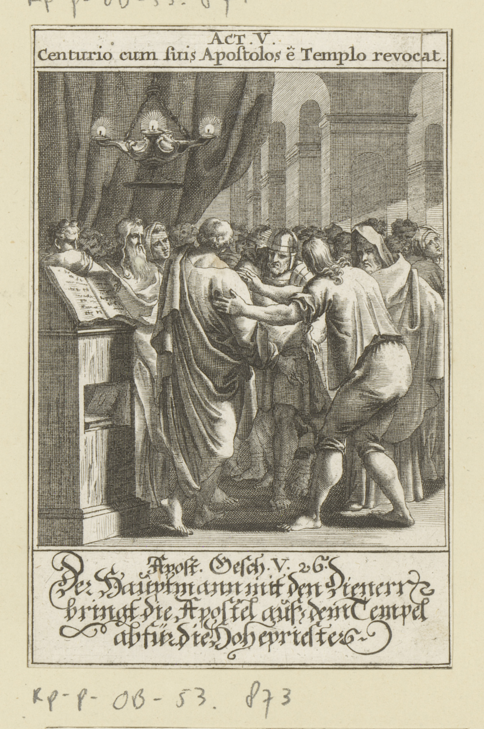 Hoofdman haalt de apostelen uit de tempel