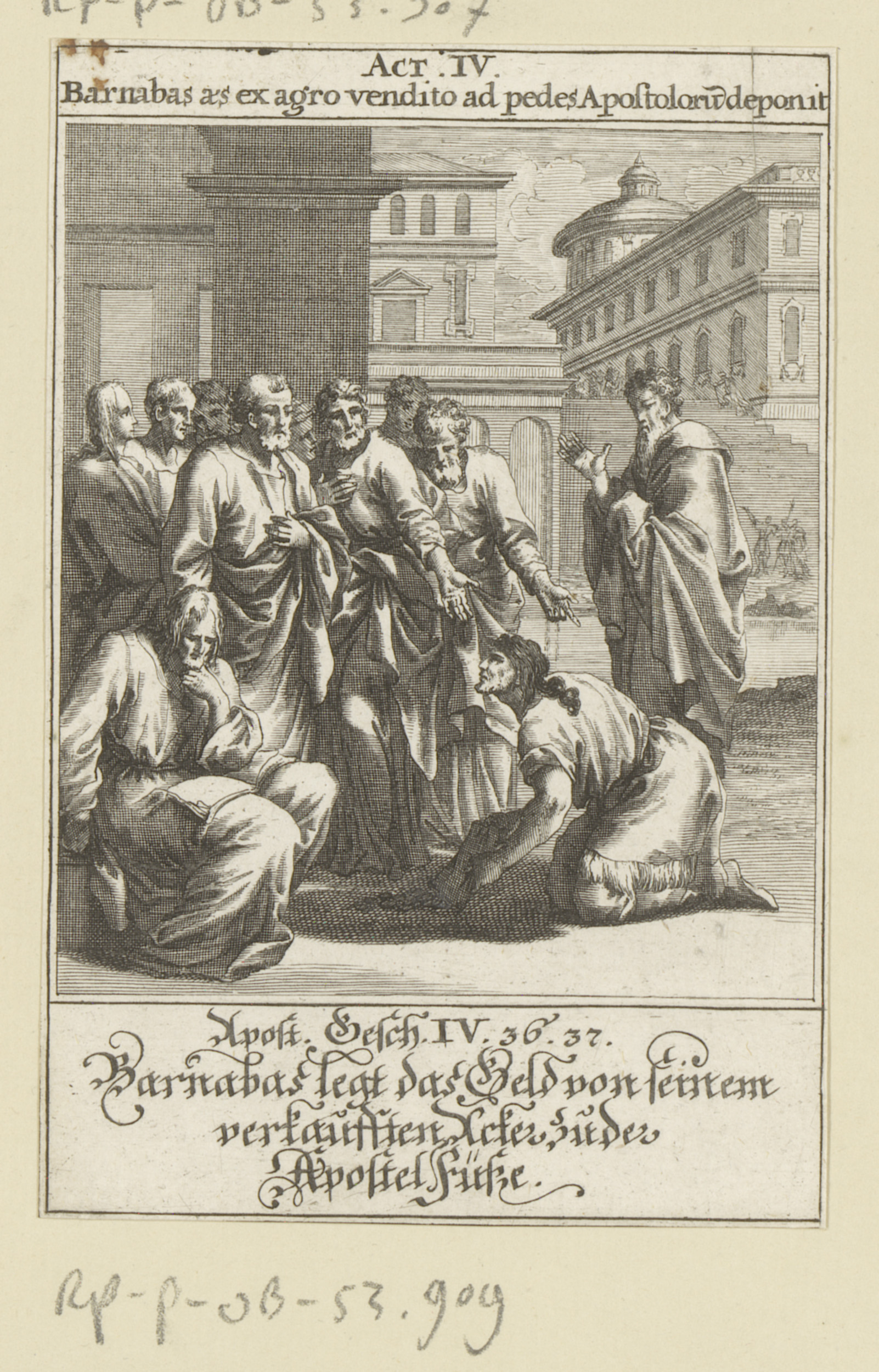 Barnabas legt zijn geld aan de voeten van de apostelen