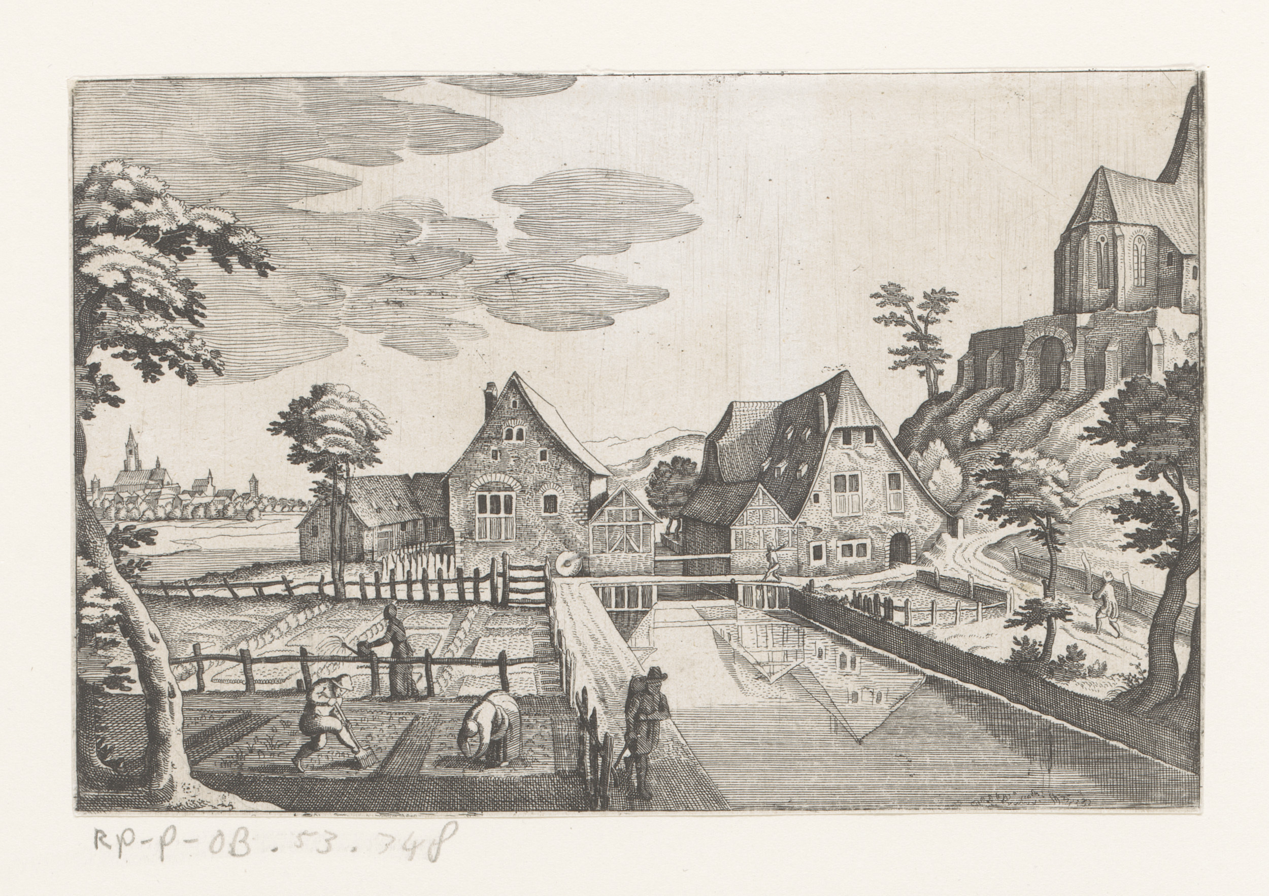Landschap met stoet dansende boeren