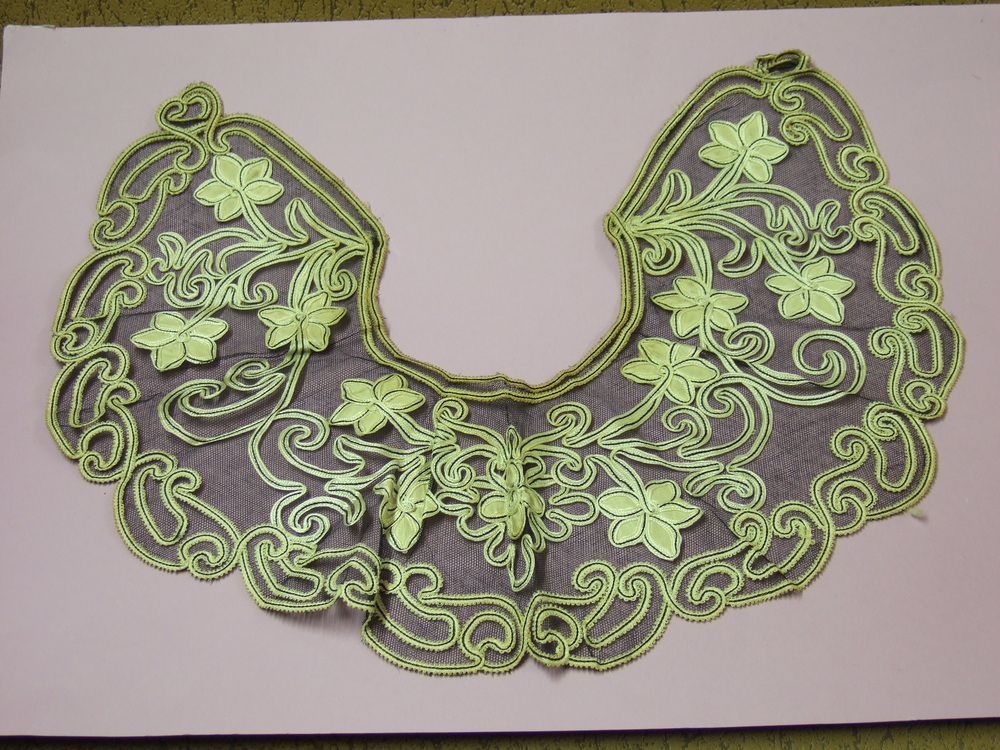 kapmantel van zwart gaas met slingers en bloemmotiev...