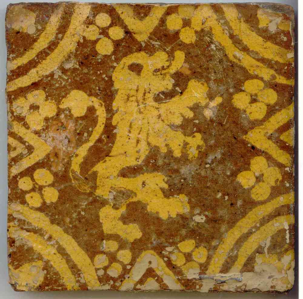 Tegel van keramiek met tinglazuur, voorstellende: ru...