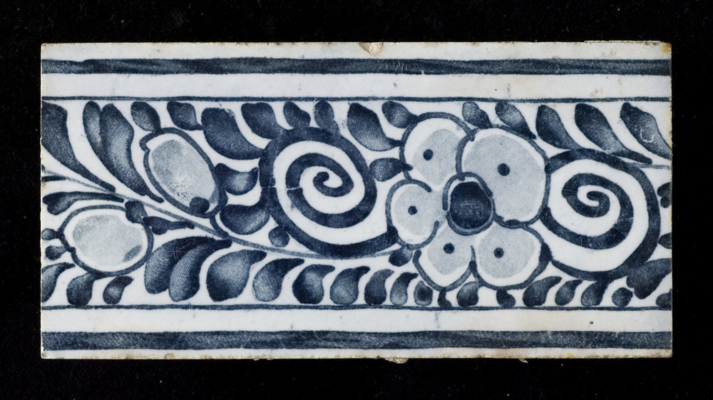 Randtegel in transfer-techniek, met voorstelling: bl...
