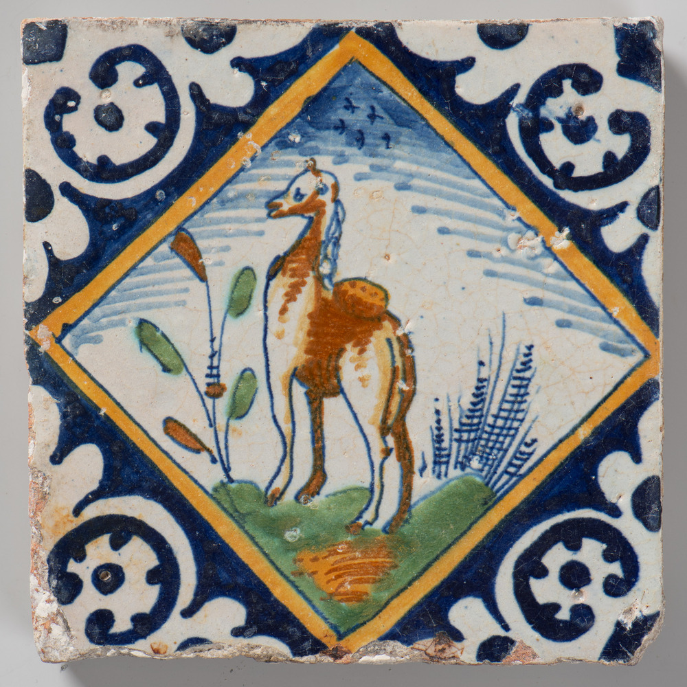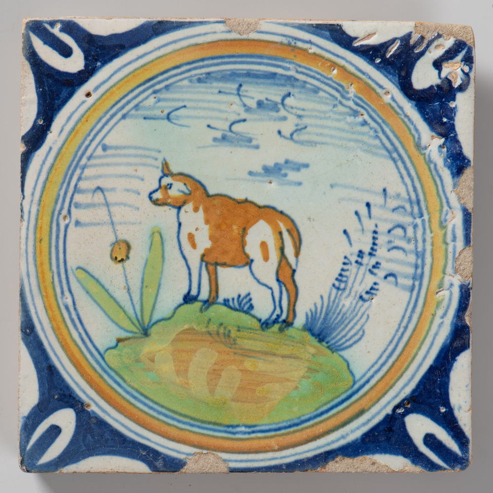 tegel van keramiek met tinglazuur, voorstellende: or...