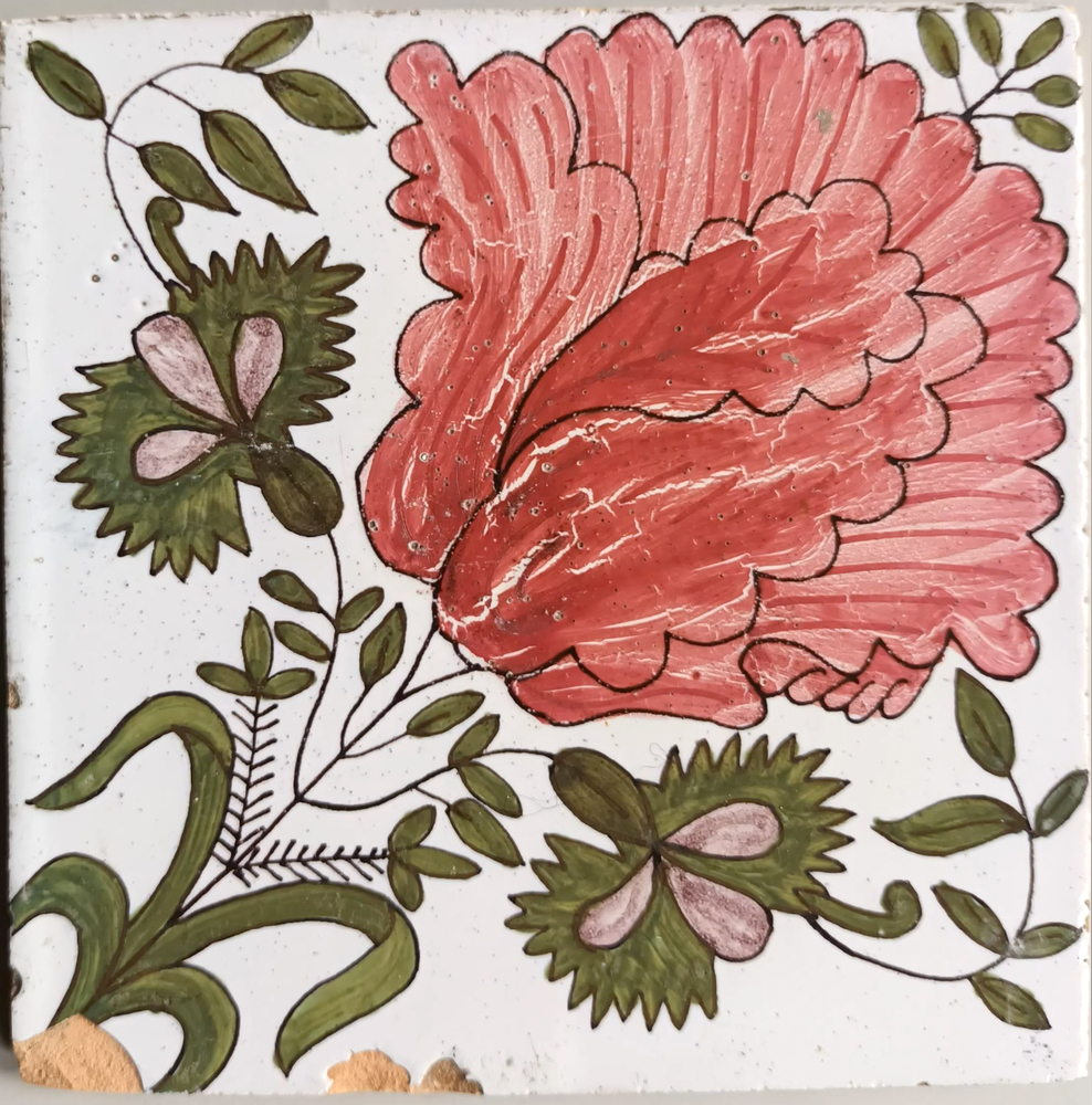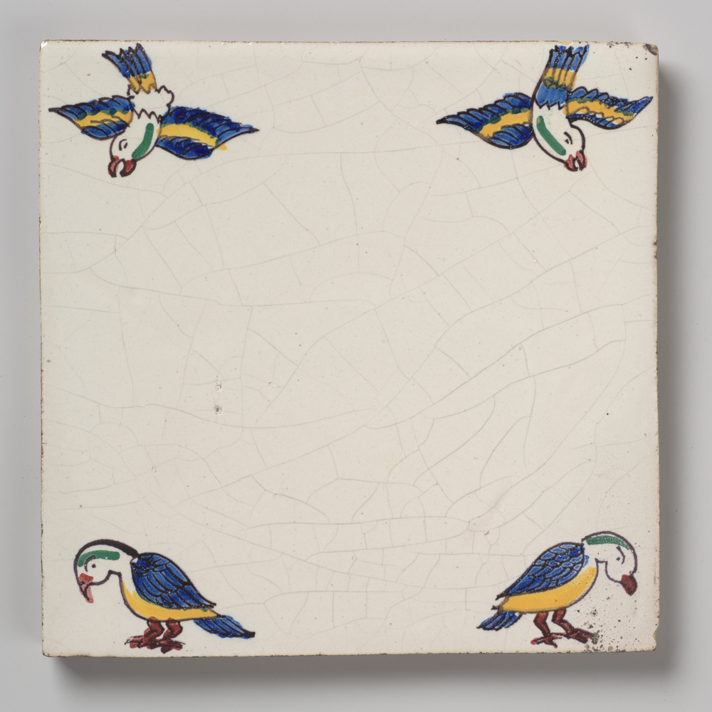 tegel van keramiek met tinglazuur, voorstellende: dr...