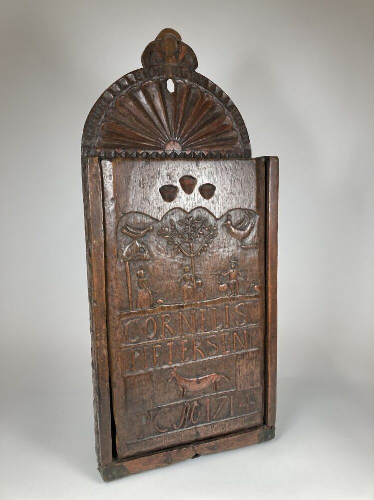 Besneden eikenhouten schooltas van Cornelis Pieterse...