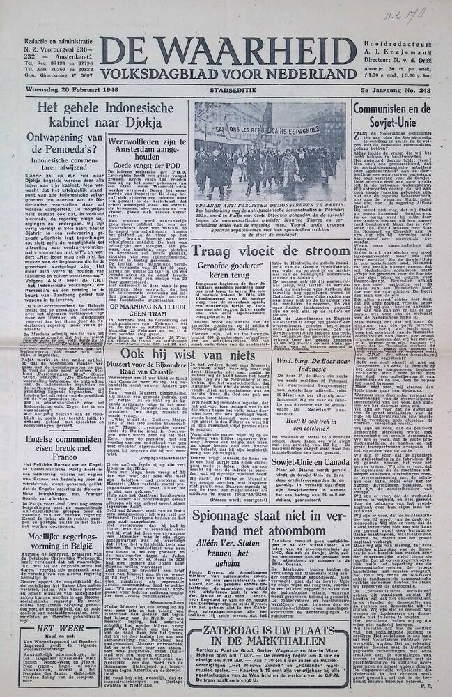 De Waarheid, 20 februari 1946, 5e jaargang no 243