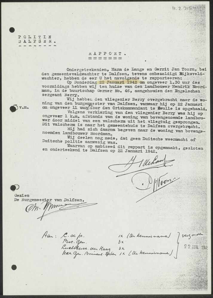 Rapport politie Dalfsen 22-01-1942.